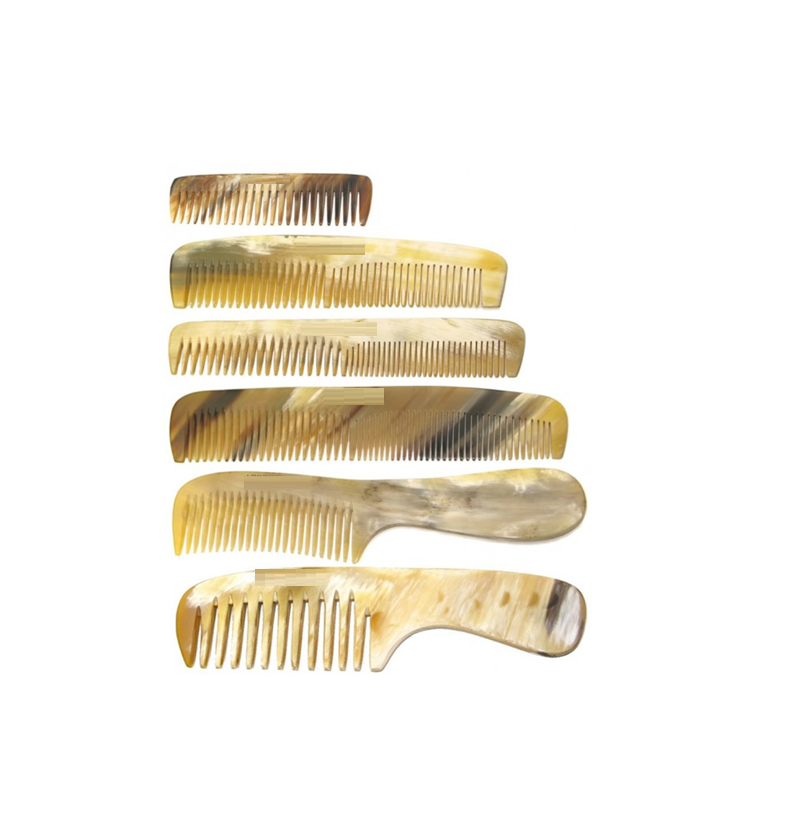 หวีผมเขาควายธรรมชาติหวีสีนวดเคราอเนกประสงค์สีดำขนาดสำหรับทรงผมดีไซน์เรียบง่าย