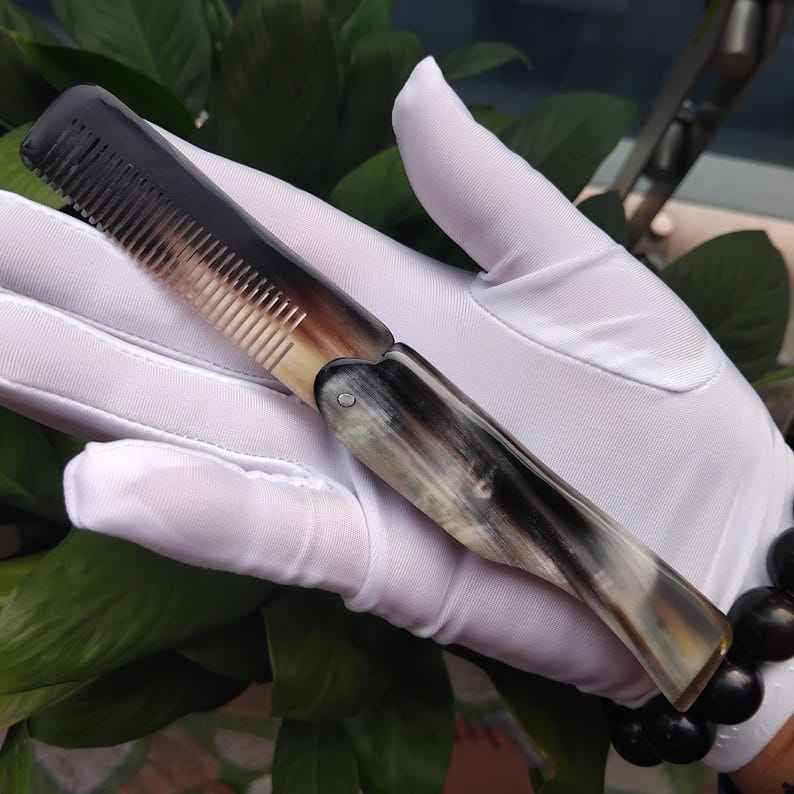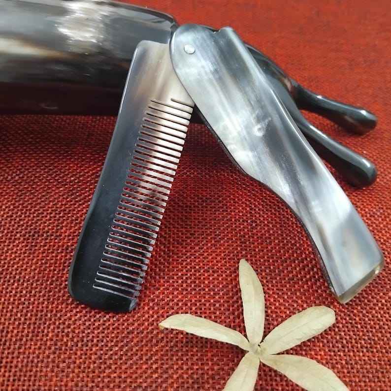 หวีผมทำจากเขาควายธรรมชาติ หวีซี่เรียบทำมือ สำหรับการสางผมอย่างอ่อนโยน ลดการแตกหักของเส้นผม ช่วยส่งเสริมการบำรุง