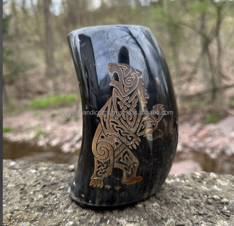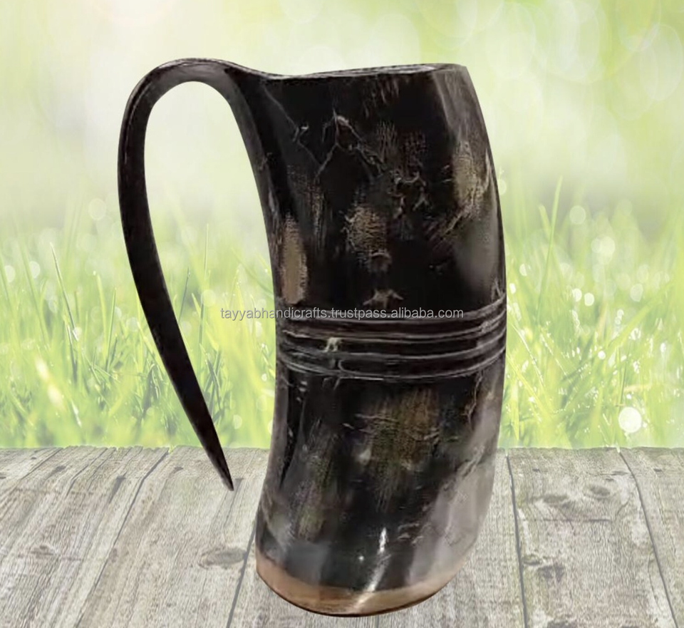 แก้วมักทรงเขาควายธรรมชาติแก้วสำหรับดื่มเบียร์แบบไวกิ้งแก้วมักทำจากไม้
