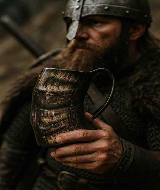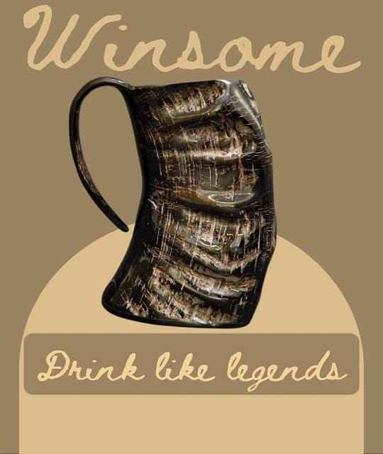 แก้วมักลายควายธรรมชาติแก้วดื่มเบียร์แบบไวกิ้งด้ามจับทำจากไม้อาเกต