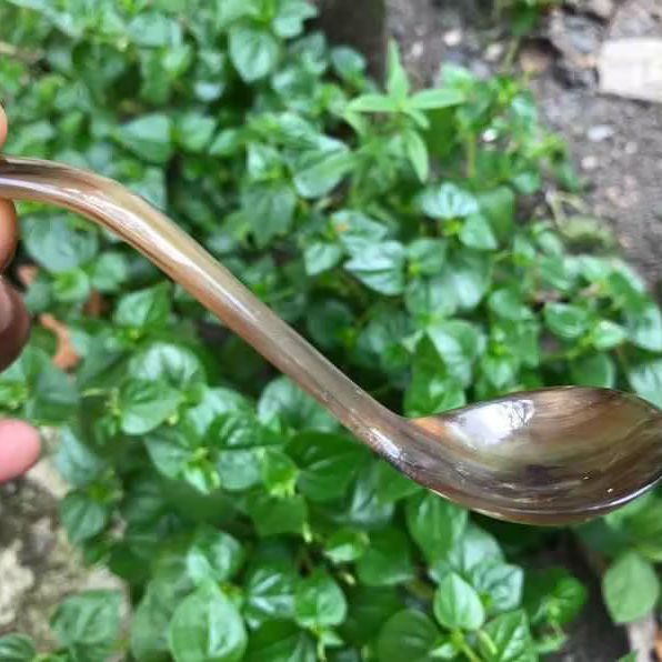 ช้อนเขาควายธรรมชาติ ทำด้วยมือและขัดเงา เหมาะสำหรับเสิร์ฟเครื่องเทศ น้ำจิ้ม หรือใช้ตกแต่งโต๊ะอาหาร คุณภาพสูง