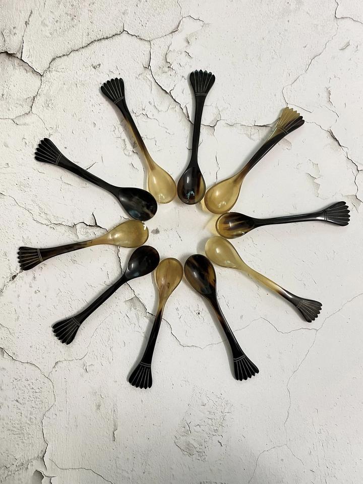 ช้อนเขาควายธรรมชาติ ทำด้วยมือและขัดเงา เหมาะสำหรับเสิร์ฟเครื่องเทศ น้ำจิ้ม หรือใช้ตกแต่งโต๊ะอาหาร คุณภาพสูง