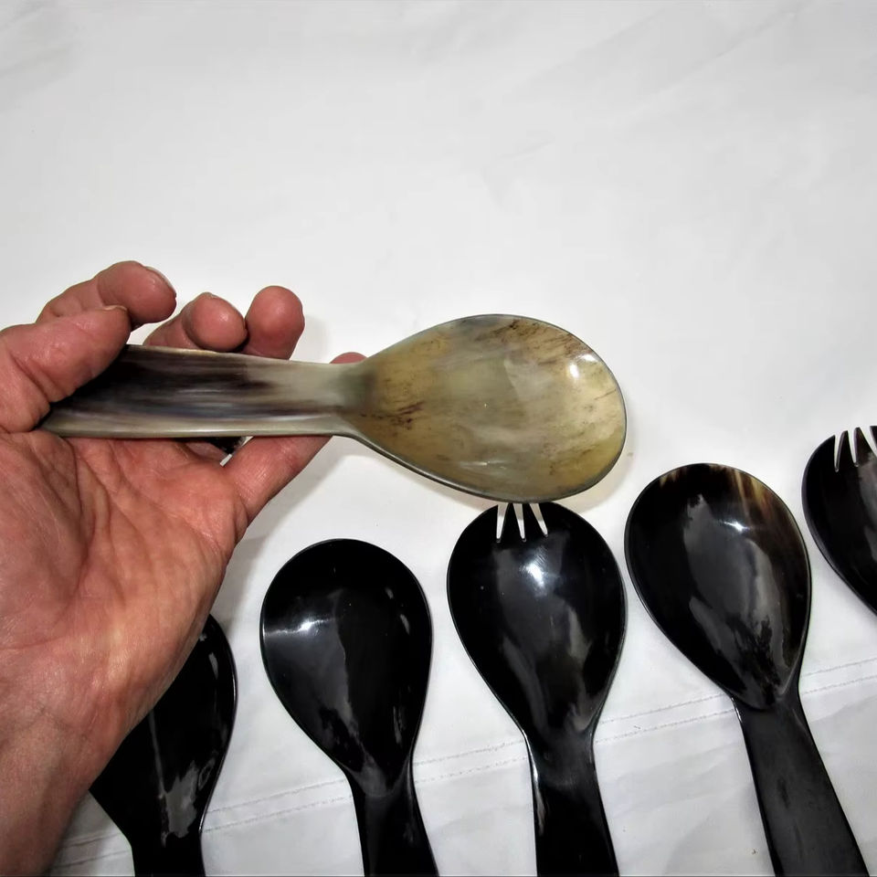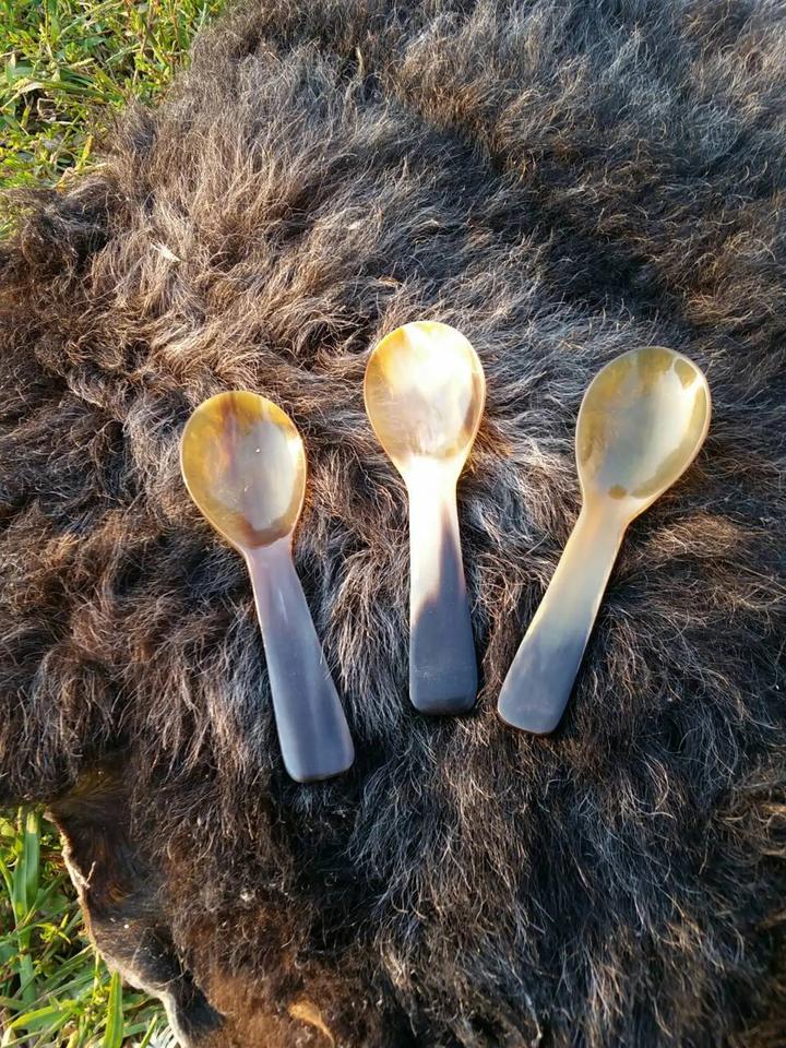 ช้อนเขาควายธรรมชาติ ทำด้วยมือและขัดเงา เหมาะสำหรับเสิร์ฟเครื่องเทศ น้ำจิ้ม หรือใช้ตกแต่งโต๊ะอาหาร คุณภาพสูง