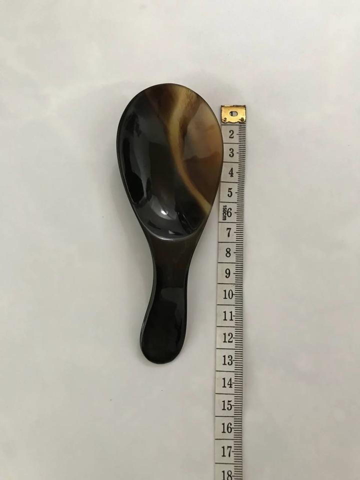 ช้อนเขาควายธรรมชาติ ทำด้วยมือและขัดเงา เหมาะสำหรับเสิร์ฟเครื่องเทศ น้ำจิ้ม หรือใช้ตกแต่งโต๊ะอาหาร คุณภาพสูง