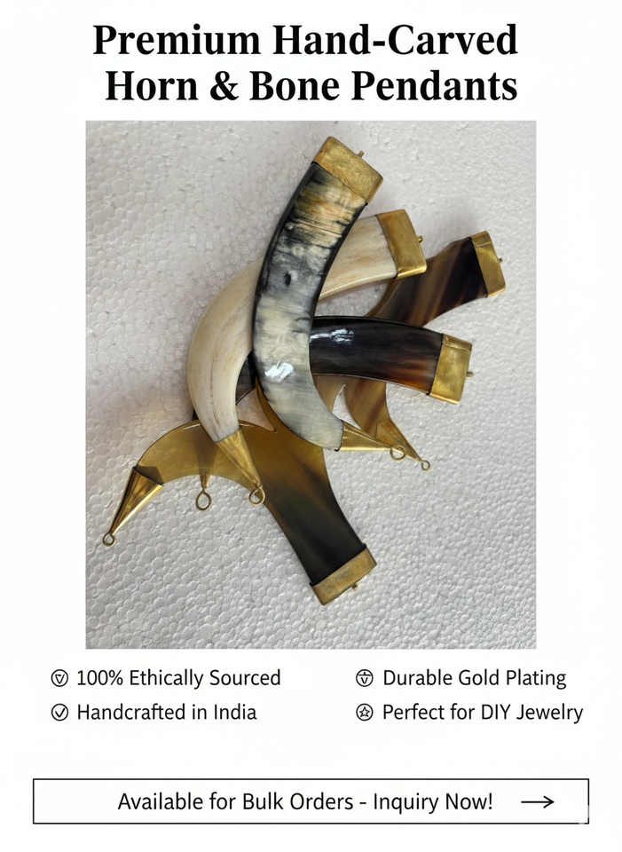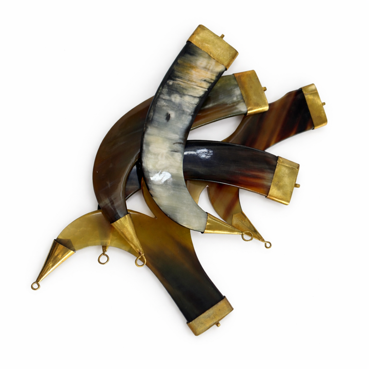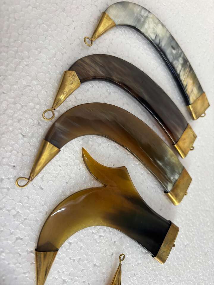 จี้เขาควายธรรมชาติ ชุบทองรูปพระจันทร์เสี้ยว เครื่องประดับชนเผ่าโบโฮ วัสดุทำเครื่องประดับ ของตกแต่งสีดำ สีเบจ