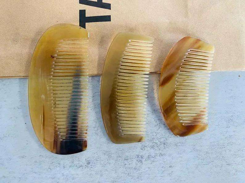 หวีผมรูปควายธรรมชาติกันน้ำทรงสี่เหลี่ยมผืนผ้าหวีตกแต่งด้วยมือสไตล์อ่อนโยนต่อเส้นผมป้องกันไฟฟ้าสถิตย์สำหรับดูแลเส้นผมทุกวัน