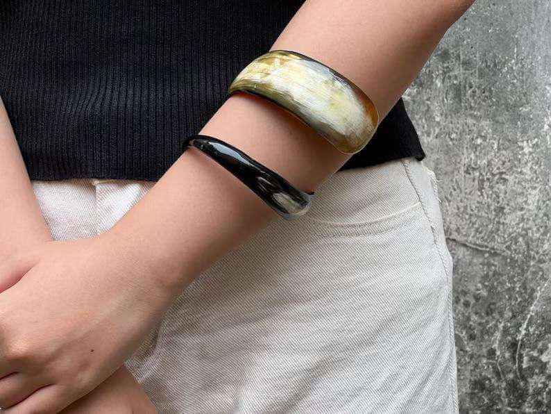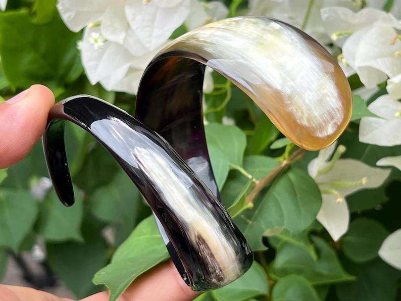 Natural Buffalo Horn Carved Cuff Bangle Bracelet Handcrafted Vintage Style Designer Fashion Jewelry