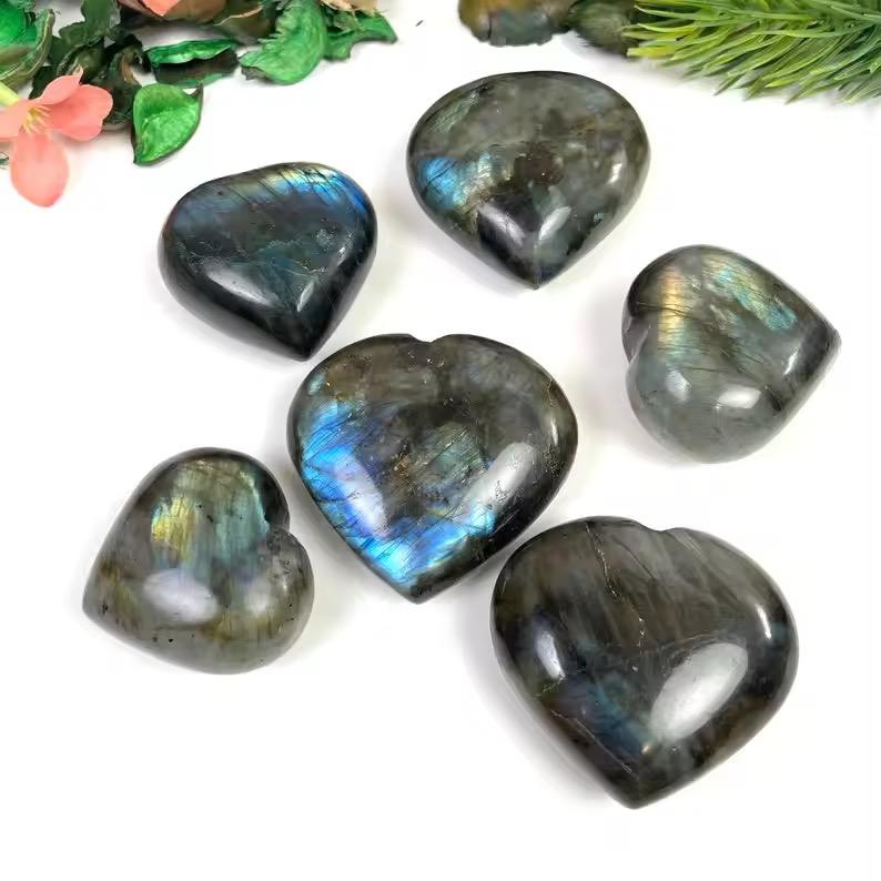 คริสตัลพลอยรูปหัวใจลาบราดอไรต์ธรรมชาติขัดเงามีประกายแวววาวของขวัญการรักษาความรักสำหรับตกแต่งบ้านแกะสลักขนาด2นิ้ว