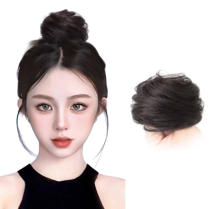 วิกผมทรงบันธรรมชาติพร้อมที่คาดผมยืดหยุ่นสูงสำหรับผู้หญิง เครื่องประดับผมทรงอัพดอยสมจริง วิกผมฟูฟ่อง ช่วยปรับรูปหน้า