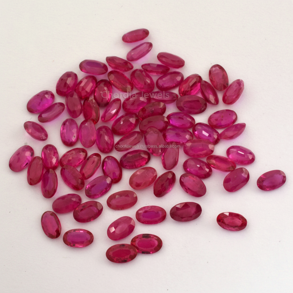 พลอยทับทิมธรรมชาติสไตล์พม่าแบบหลวม4X3มม.-5x3มม. พลอยทับทิมเจียระไนทรงรีสำหรับทำเครื่องประดับ