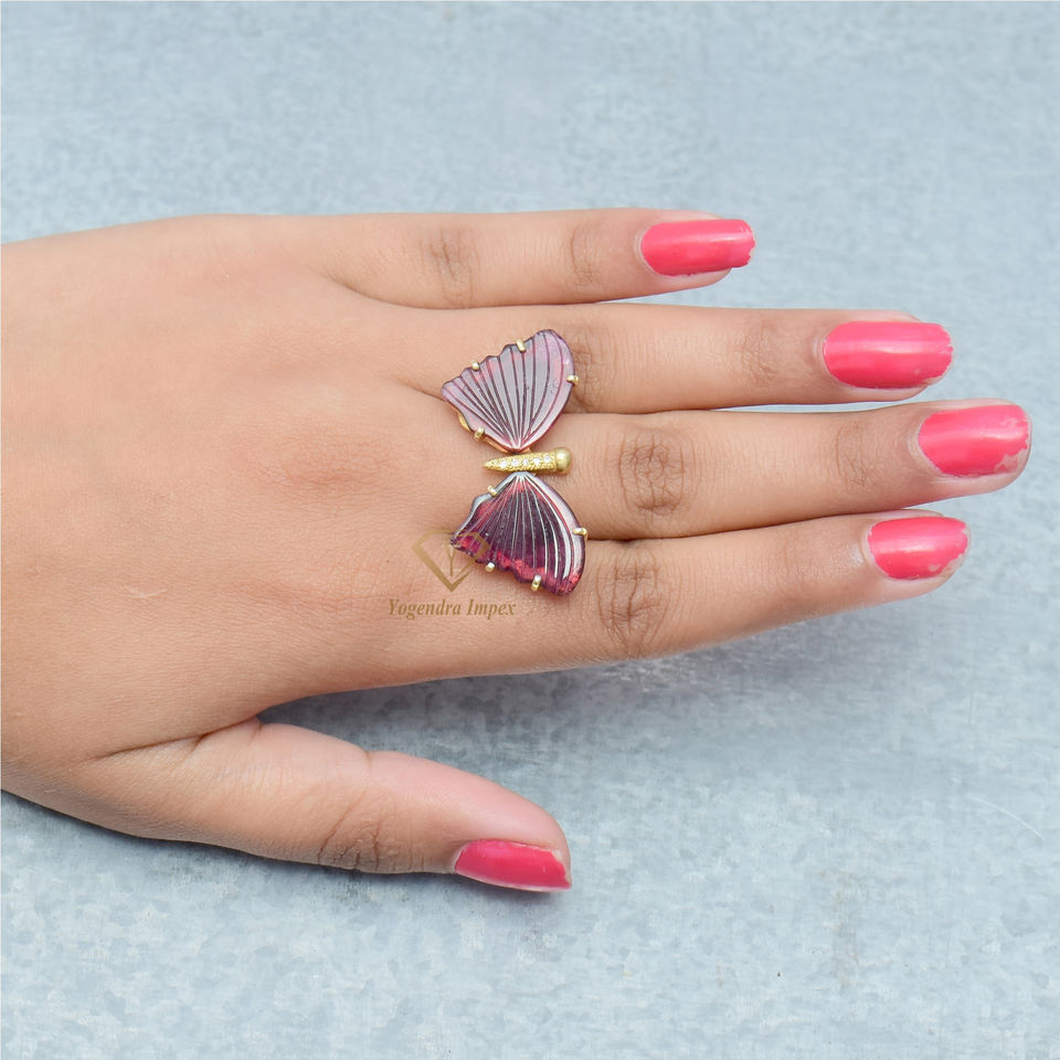 พลอยสามสีแกะสลักสีชมพูหินหลัก