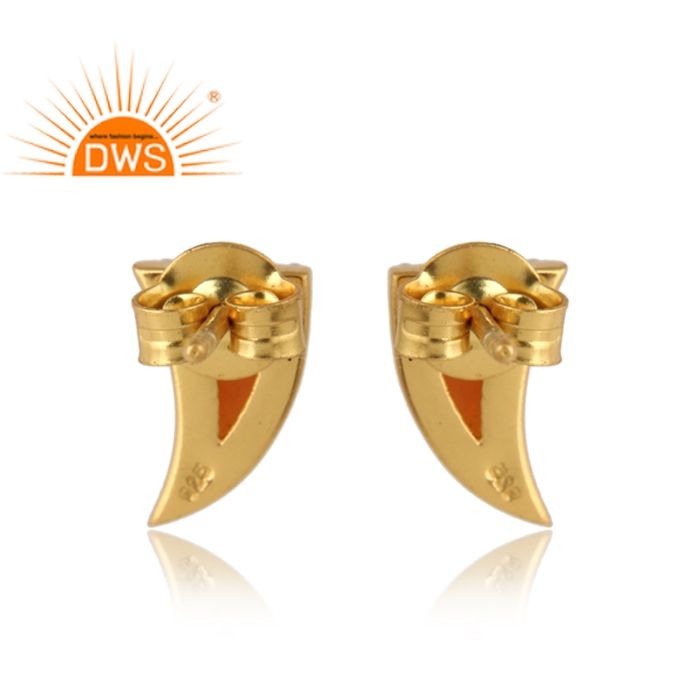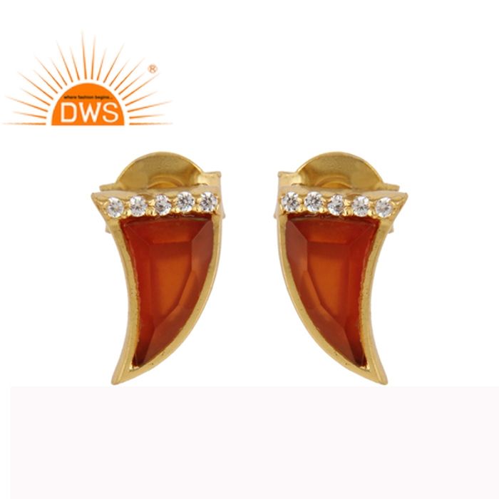 ต่างหูเพชร CZ ธรรมชาติและพลอยออนิกซ์สีแดง ต่างหูแบบติดหูขนาดเล็ก ชุบทองบนตัวเรือนเงิน ผู้ผลิตเครื่องประดับต่างหู