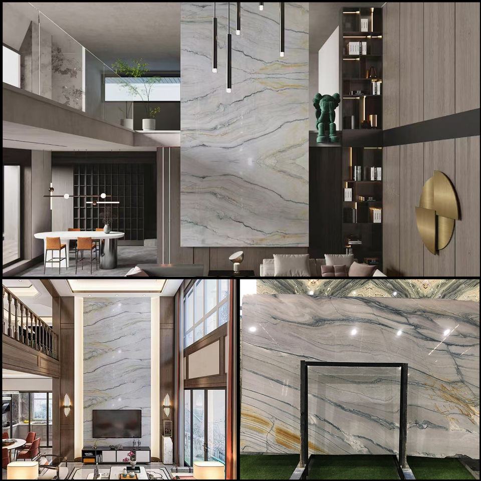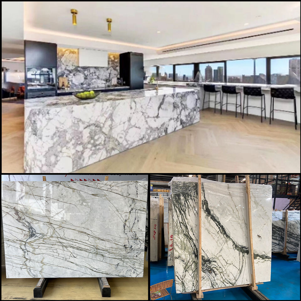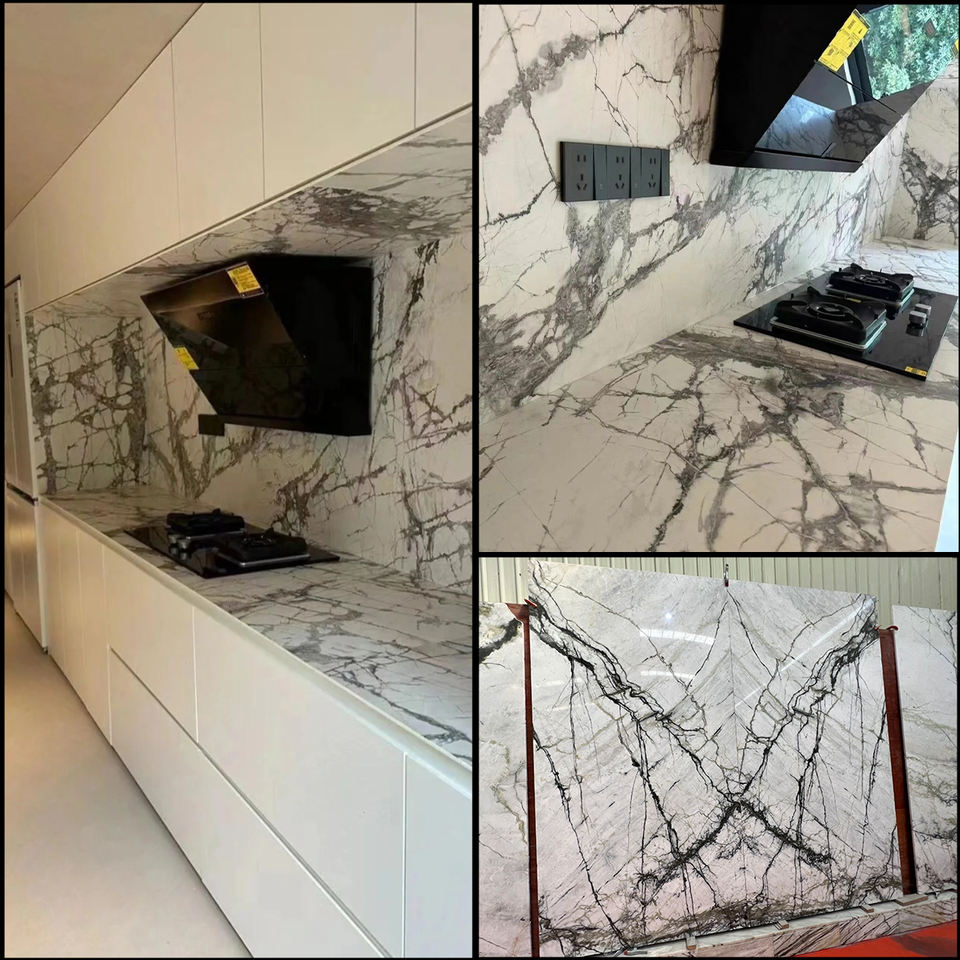 หินอ่อนธรรมชาติคาลาคัตต้าสีขาวเทาสำหรับเคาน์เตอร์ครัววิลล่า บันได ผนังโรงแรม ตกแต่งล็อบบี้ ตกแต่งร้านค้าหรู