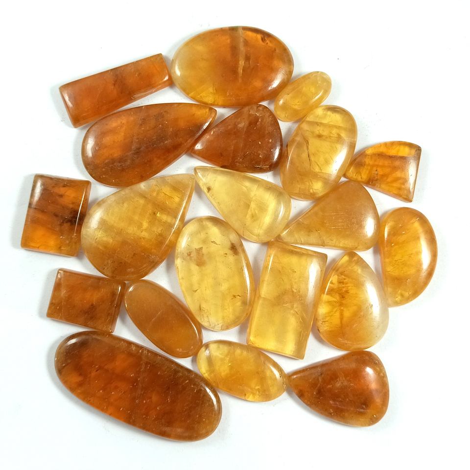 อัญมณีแคลไซต์สีเหลืองธรรมชาติอัญมณีหายากที่มีอัญมณีขัดเงาจำนวนมาก