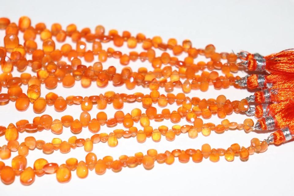 ธรรมชาติ Carnelian ด้านเพชรรูปร่างลูกปัด Carnelian Briolette 8 นิ้วสําหรับเครื่องประดับทํา