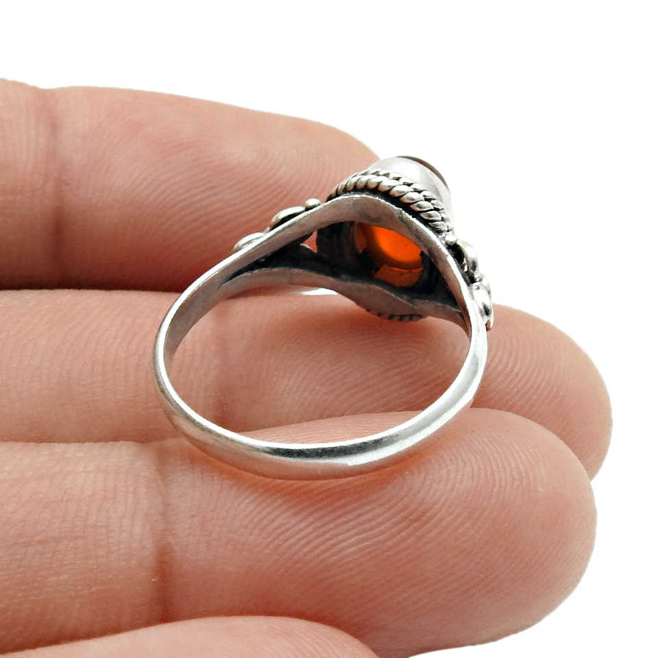 แหวนค็อกเทลพลอยคาร์เนเลียนธรรมชาติในตัวเรือนเงินแท้ 925 ดีไซน์วินเทจทันสมัยสไตล์โบโฮ ราคาสมเหตุสมผล