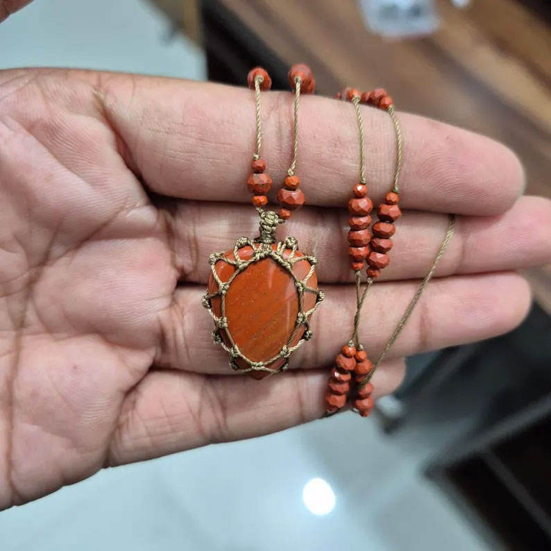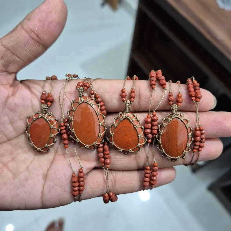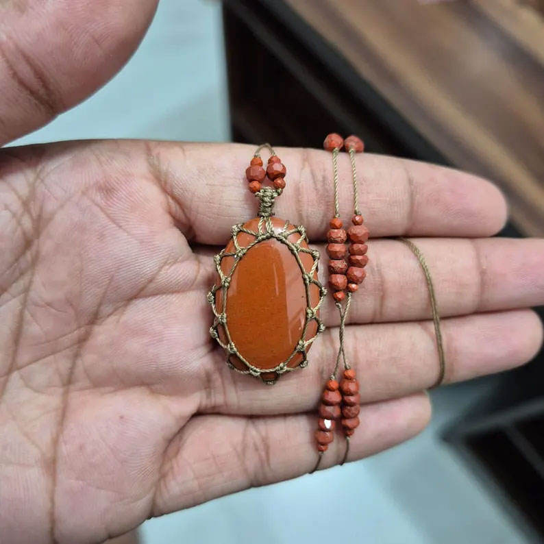 สร้อยคอจี้หินคาร์เนเลียนธรรมชาติแบบมาคราเม่ ทำด้วยมือ หินสีส้ม เครื่องประดับคริสตัลบำบัดสไตล์โบโฮ เชือกปรับได้