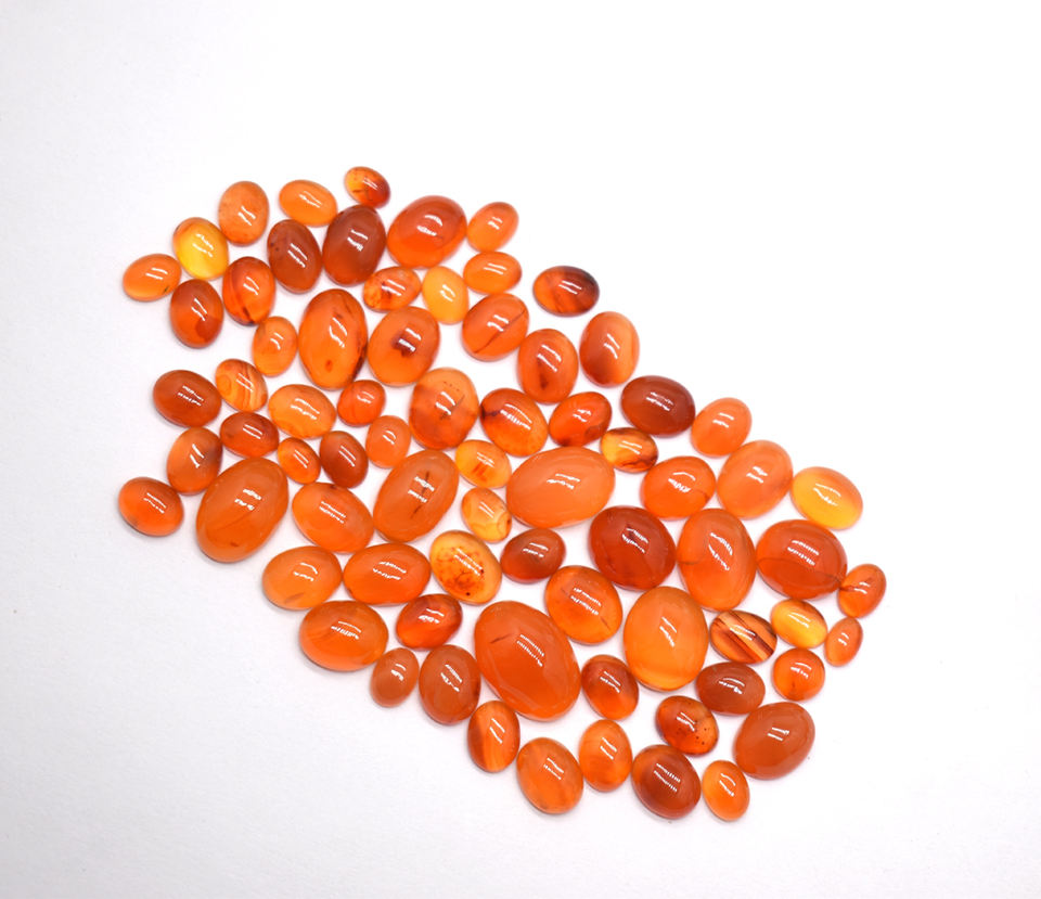 ผลึกอัญมณีทรงรีจากคาร์เนเลี่ยนธรรมชาติขนาด7X5มม. ถึง20X15มม.