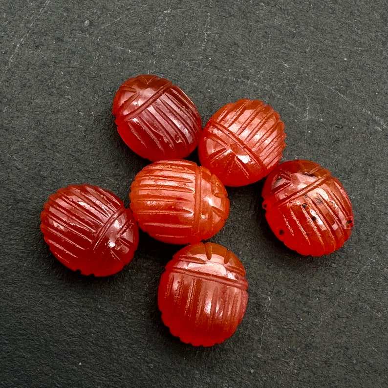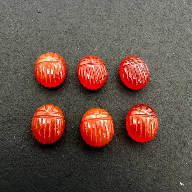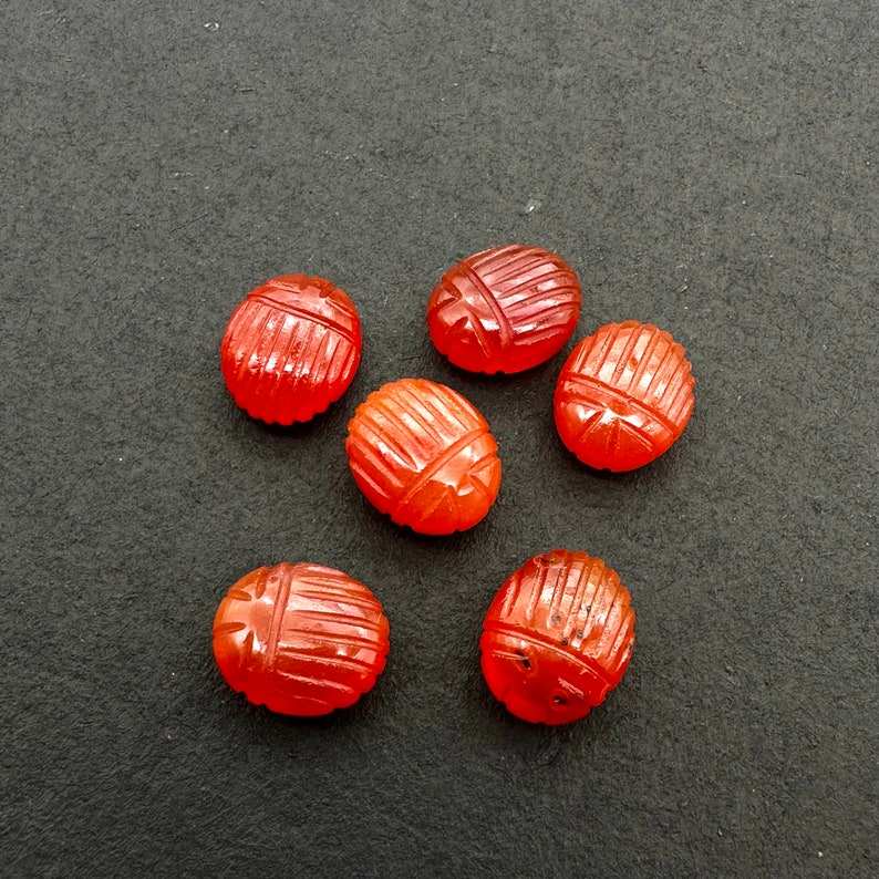ลูกปัดรูปแมลงปีกแข็งคาร์เนเลี่ยนธรรมชาติขนาด10x12มม. ทำด้วยมือแกะสลักพลอยทำด้วยมือ