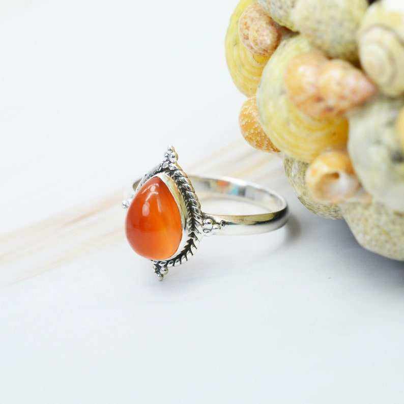 แหวนพลอยคาร์เนเลียนทรงลูกแพร์เจียระไนเรียบเนียน เงินแท้ 925 สำหรับงานปาร์ตี้ แฟชั่นสำหรับผู้ชายและผู้หญิง ขายส่ง