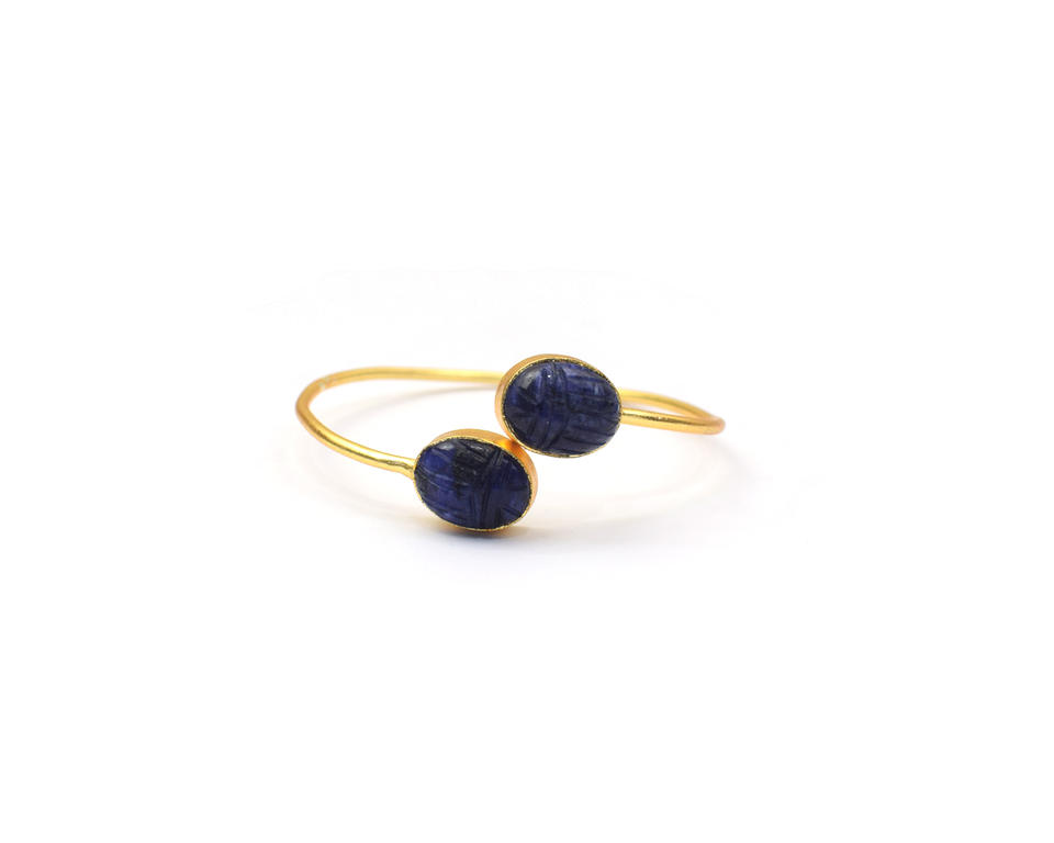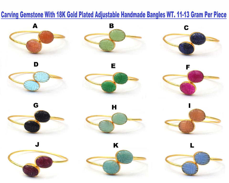 กำไลชุบทองอัญมณีแกะสลักธรรมชาติปรับได้