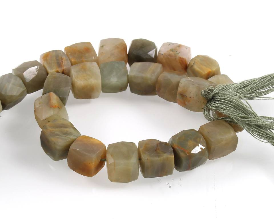 ลูกปัดกล่องเหลี่ยมเพชรพลอยตาแมวธรรมชาติลูกปัดทรงลูกบาศก์ดวงตาแมวสีเทาลูกปัดอัญมณี