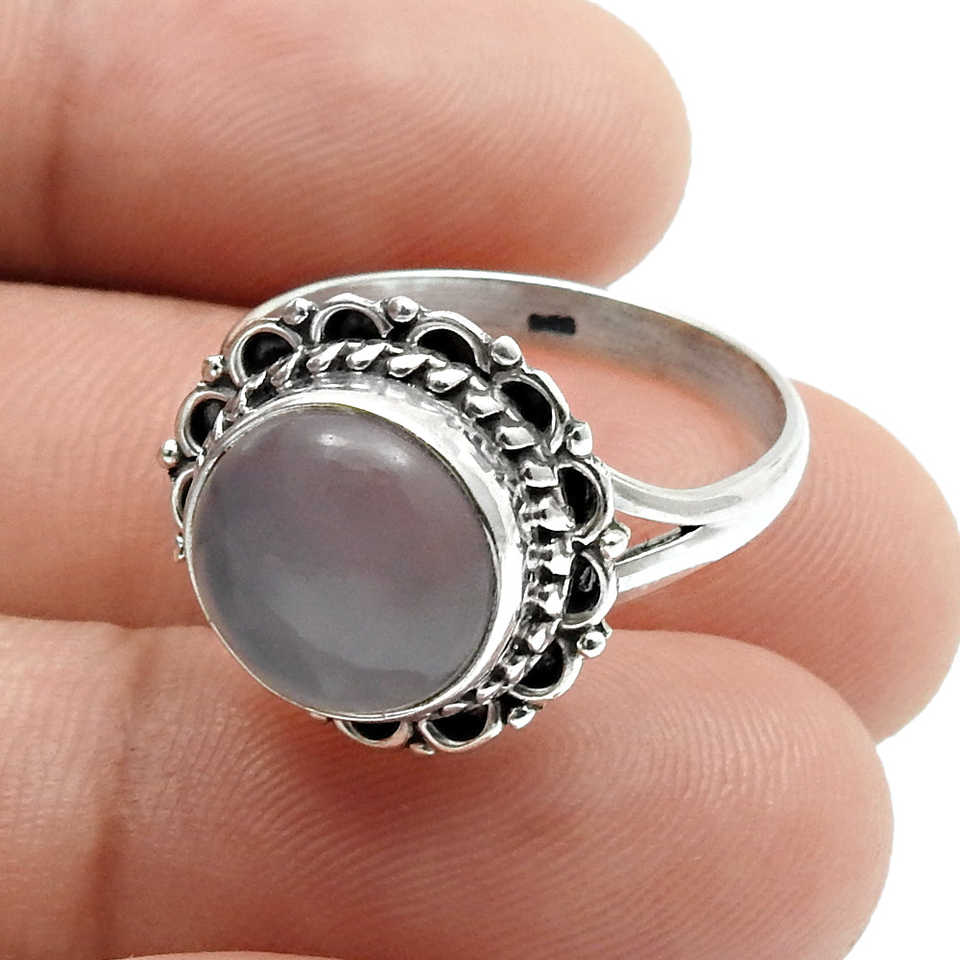 แหวนพลอยแคลเซโดนีธรรมชาติ ทำด้วยมือสำหรับสวมใส่ทุกวัน ประดิษฐ์จากเงินแท้ 925 แหวนสไตล์โบฮีเมียนคลาสสิก