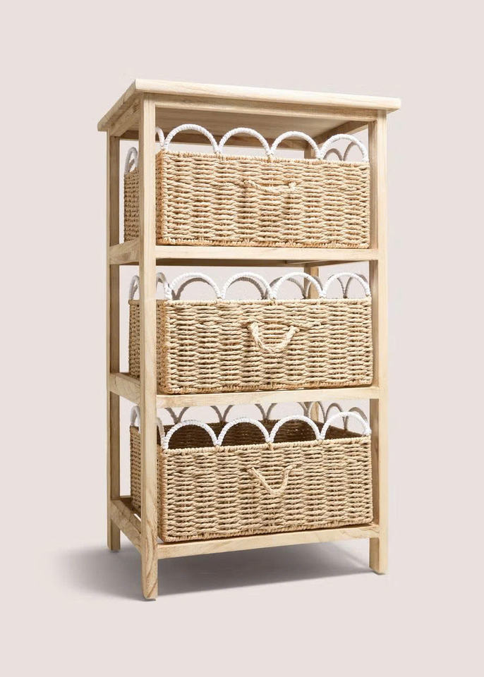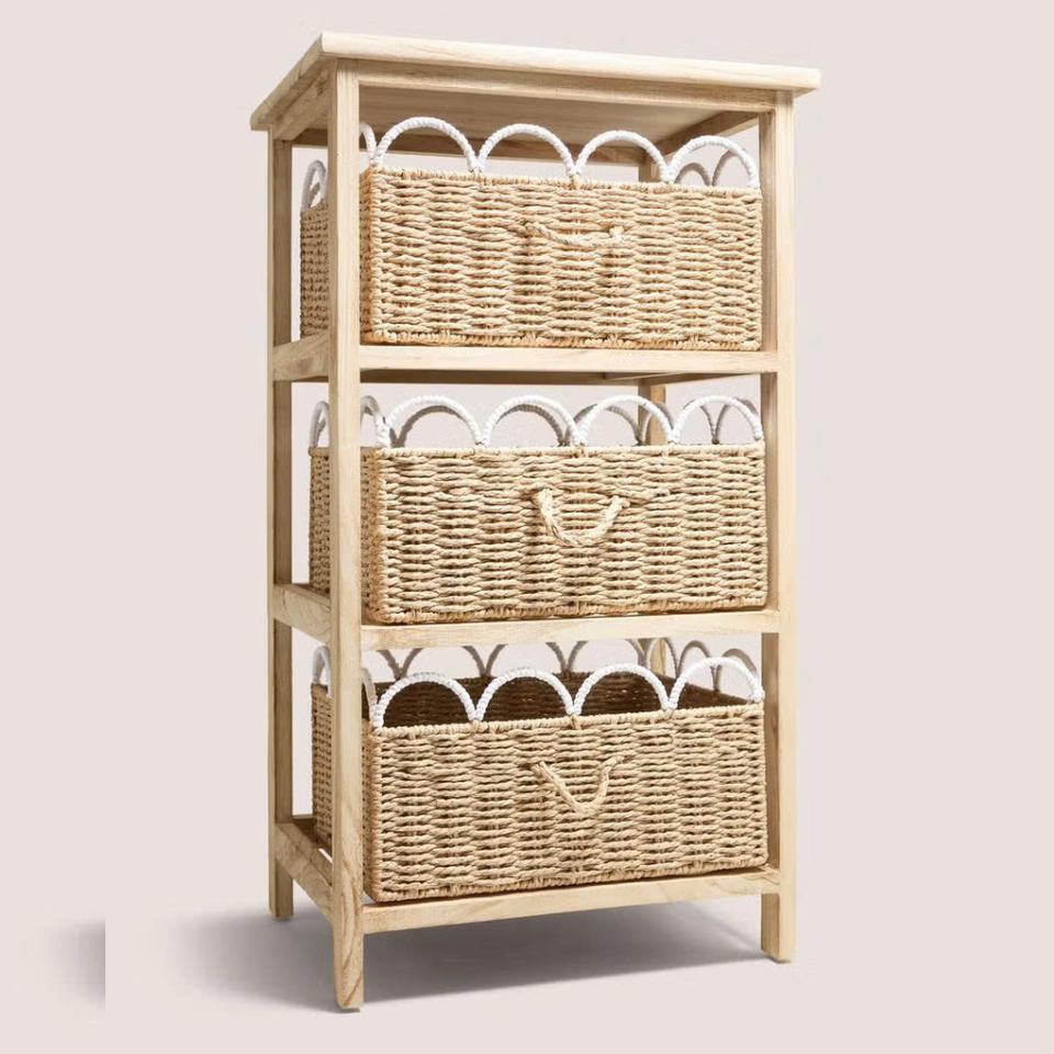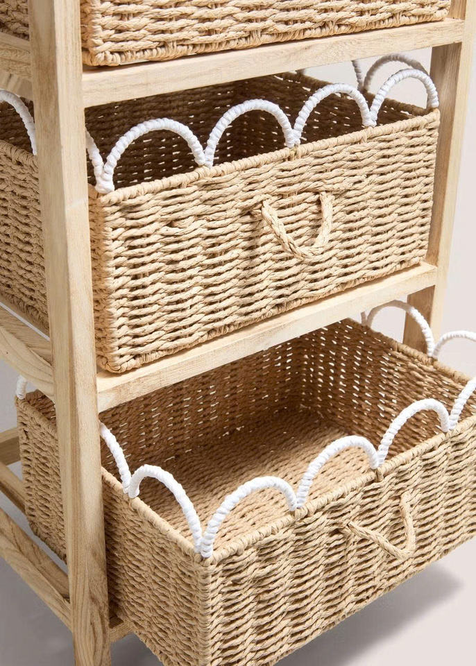 ลิ้นชักไม้และหญ้าทะเลทรงหอยเชลล์ ดีไซน์สวยงามและใช้งานได้จริง สำหรับจัดเก็บของใช้จำเป็นในครัว