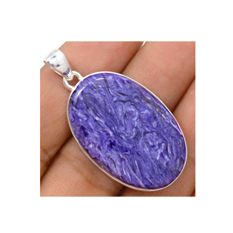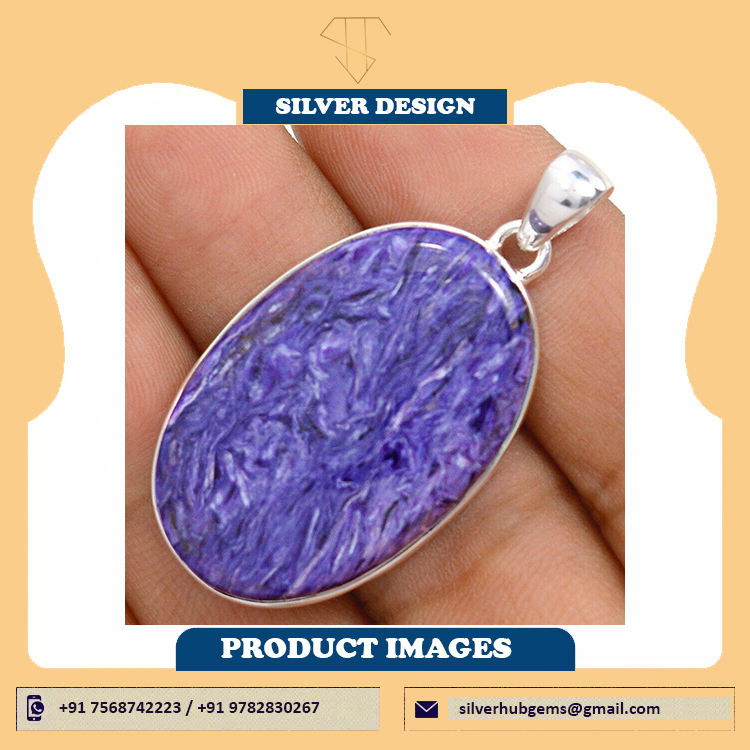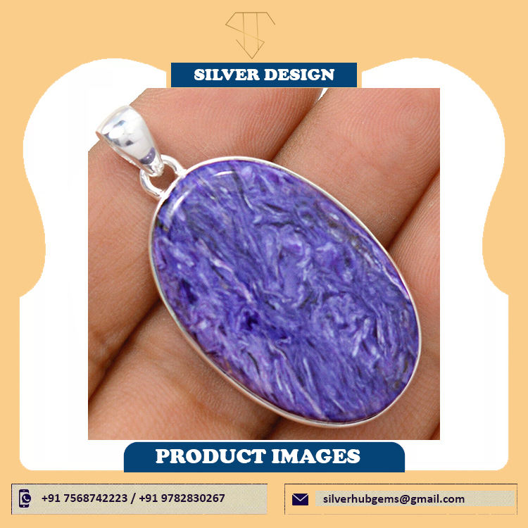 จี้เงินแท้ประดับพลอยชารอยต์ธรรมชาติ งานแฮนด์เมด จี้เงินสเตอร์ลิง จี้เงินชารอยต์ไซบีเรีย