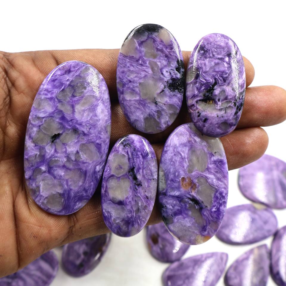 Charoite ธรรมชาติ! หิน Charoite cabs ทรงแบนขนาดใหญ่หิน Charoite สีม่วงสำหรับทำเครื่องประดับขายส่ง