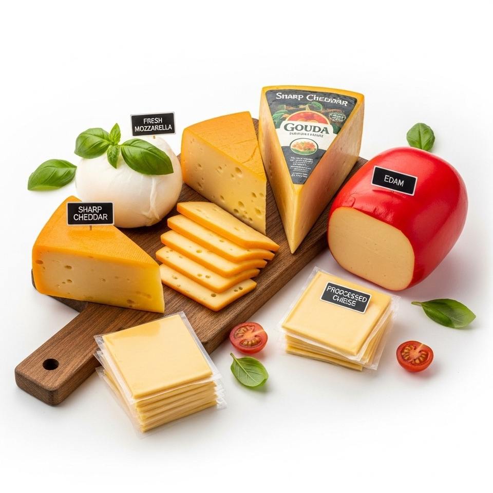 ชีสธรรมชาติ (มอสซาเรลล่า, เชดดาร์, เกาดา, Edam, แปรรูป)