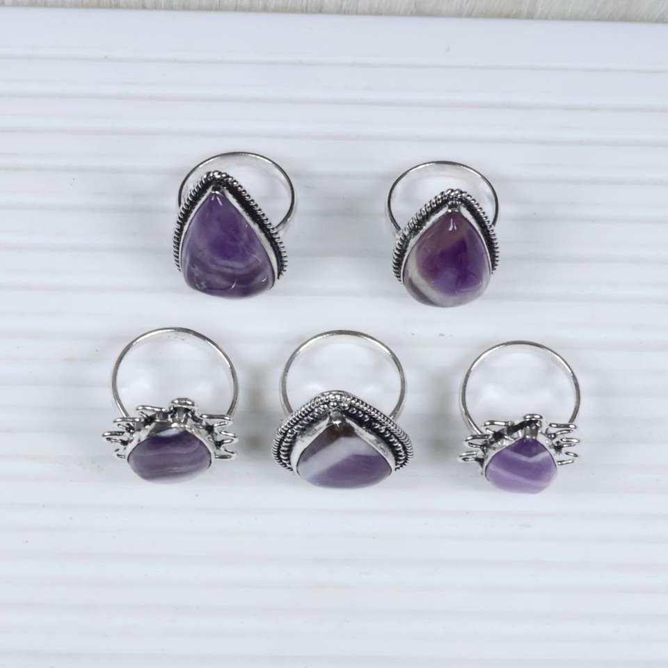 แหวนพลอยอเมทิสต์เชฟรอนธรรมชาติเครื่องประดับชุบเงินแหวนดีไซน์เนอร์สำหรับขายปลีก