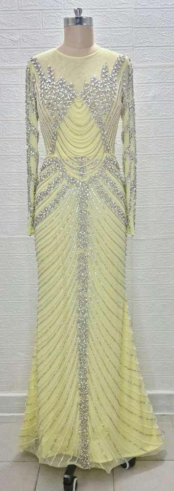 ชุดเดรสราตรีผ้าชิฟฟ่อนความยาวถึงพื้นสไตล์ค๊อกเทลลูกปัดเลื่อมแขนยาวทรงบอลหรูหราสง่างาม