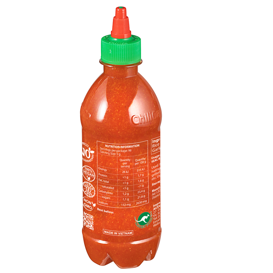 ส่วนผสม:Chili (76.8%), garlic, rice vinegar, salt, sugar