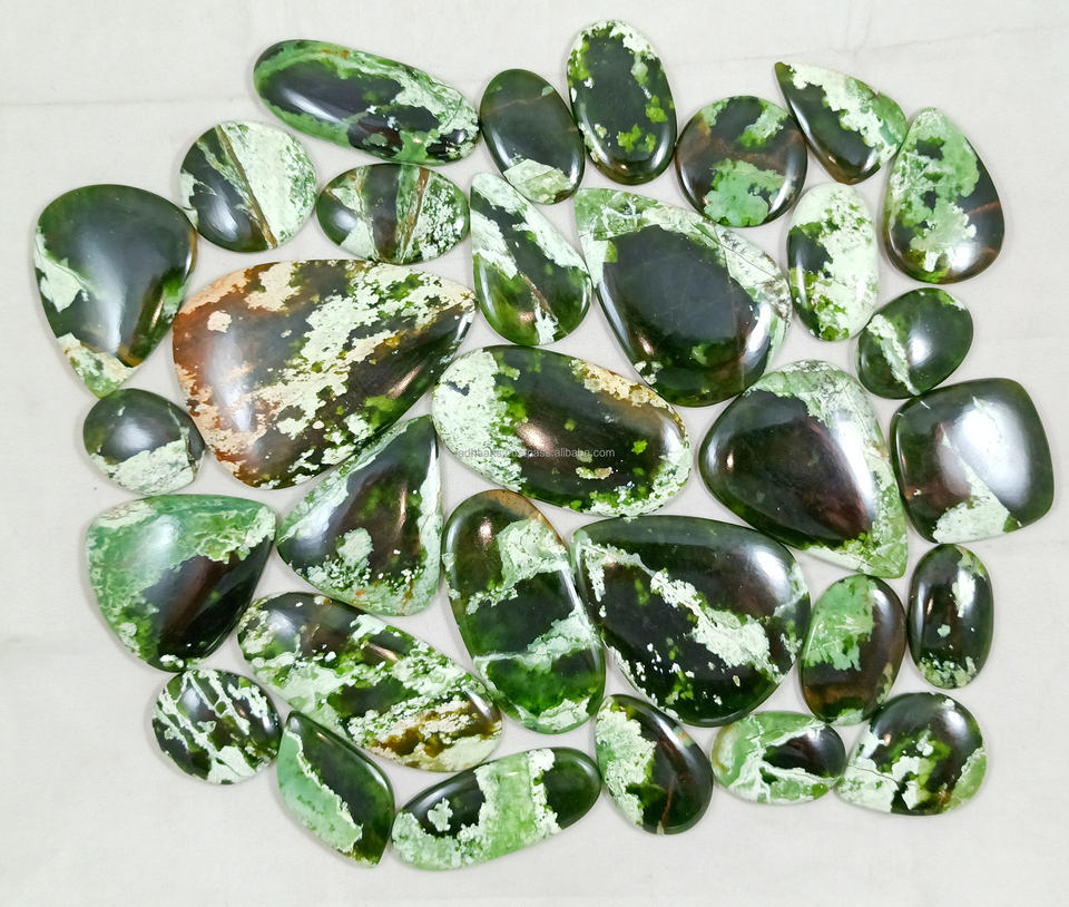 หินคาลซิโดนีโครเมี่ยมธรรมชาติอัญมณีสีเขียวทรงหลวมเรียบสำหรับทำเครื่องประดับตัวแทนจำหน่ายทั่วไปออนไลน์