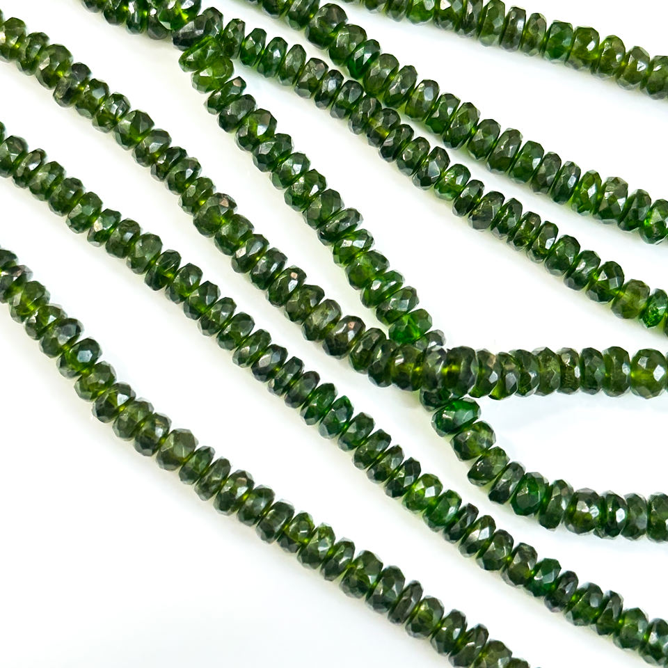 ลูกปัดโครเมียมไดโอไซด์ทรงรอนเดลเหลี่ยมเพชรพลอยธรรมชาติสำหรับทำเครื่องประดับ ขนาด 4 มม.-6 มม. ลูกปัดพลอยโครเมียมไดโอไซด์แบบหลวมจำนวนมาก
