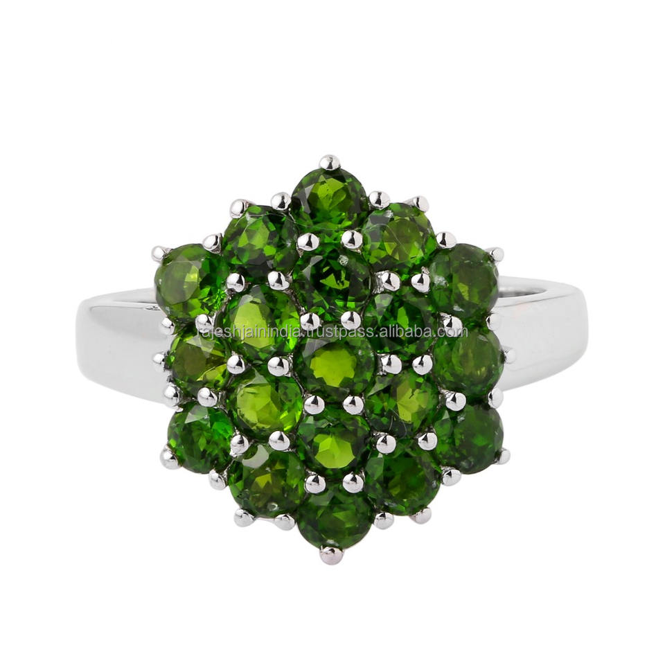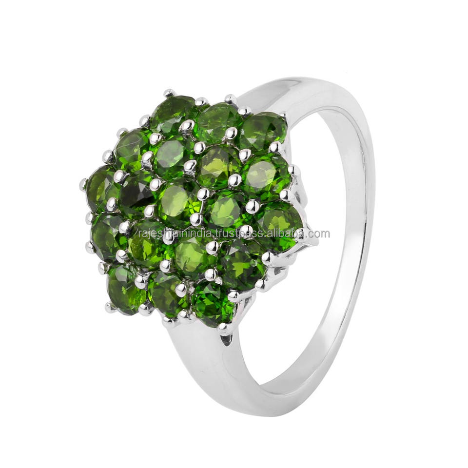 ธรรมชาติโครเมี่ยม Diopside แหวนเงิน925