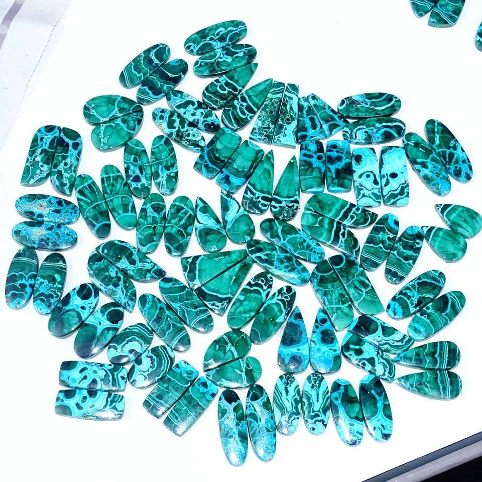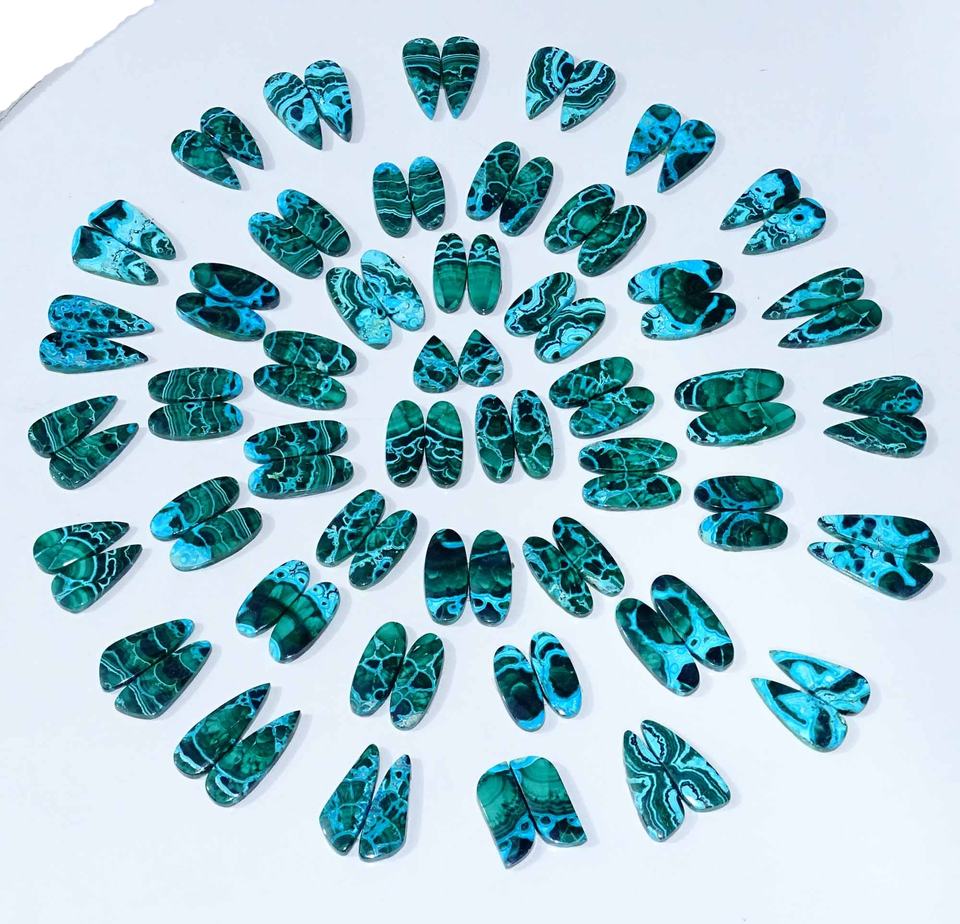 Chrysocolla Malachite คู่ Cabochon ธรรมชาติคู่จับคู่มากสำหรับการทำเครื่องประดับการรักษาคู่หินขัดพร้อมขาย