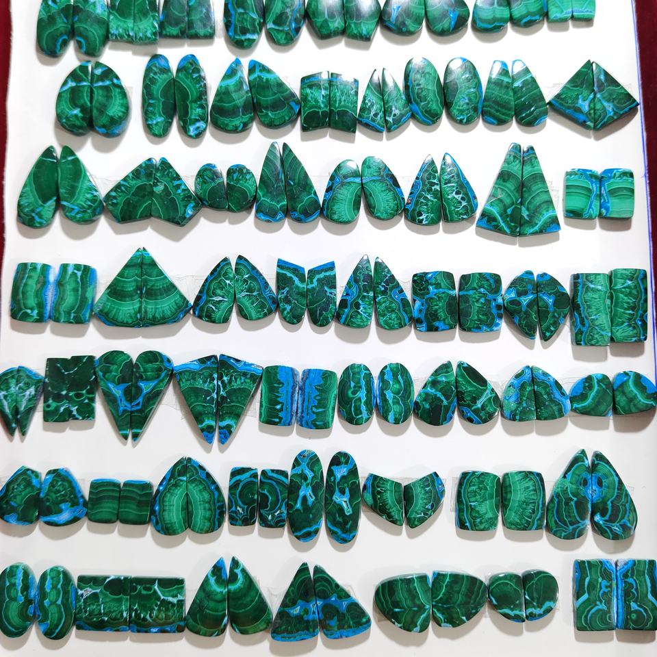 Chrysocolla Malachite คู่ Cabochon จับคู่คู่