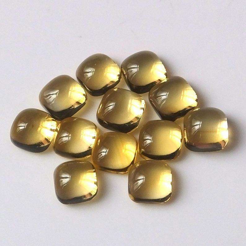 พลอยซิทรินทรงหลังเบี้ยทรงเบาะซิทริน4x4มม. ทำจากซิทรินธรรมชาติสำหรับทำเครื่องประดับ