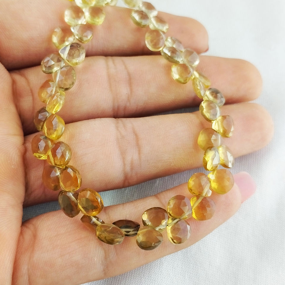 พลอยซิทรินธรรมชาติเหลี่ยมเพชรพลอยรูปหัวใจลูกปัดเกลียวยาว8นิ้วขนาด7-8มม. โดยประมาณสำหรับทำของขวัญเครื่องประดับ