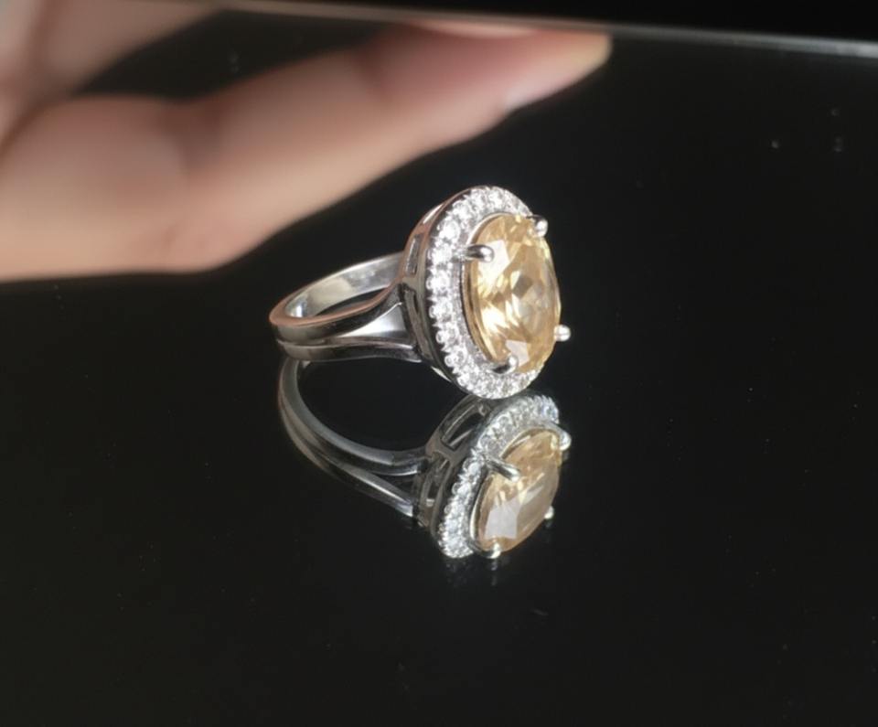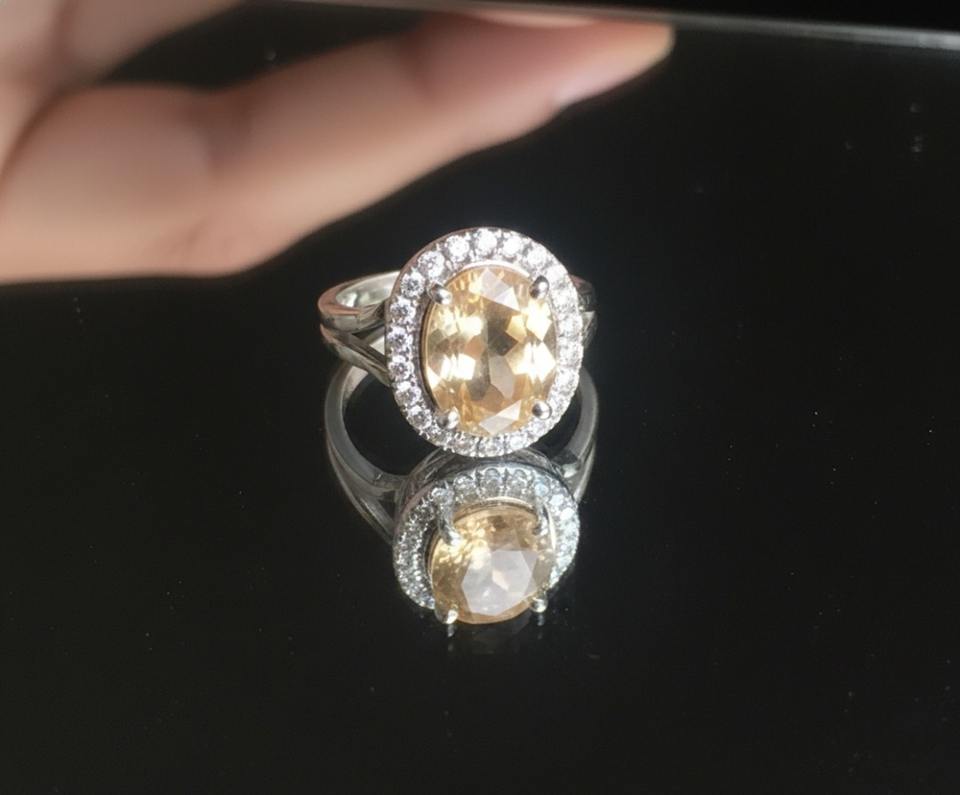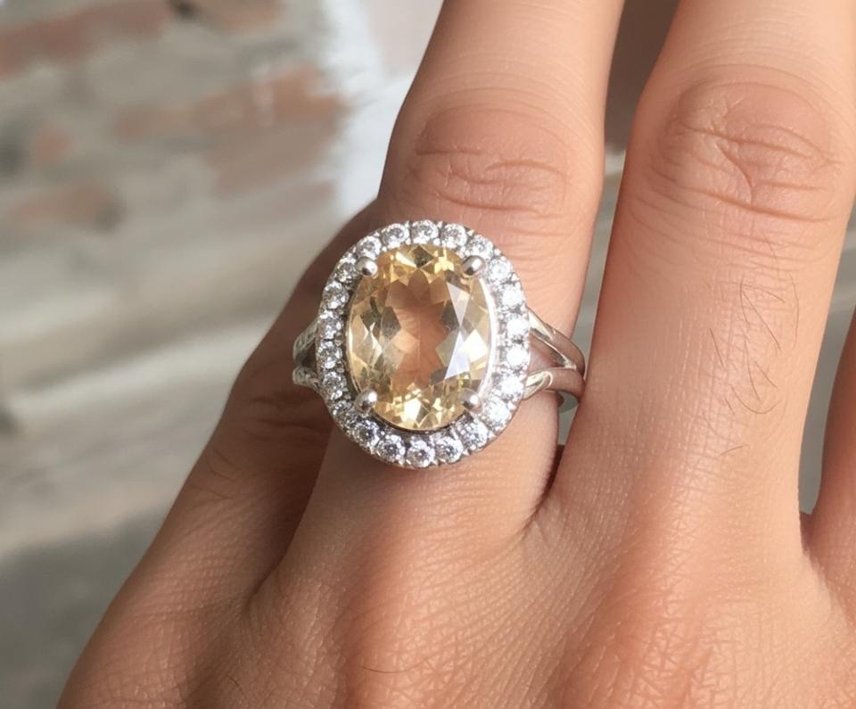 แหวนค็อกเทลเพชรทรงรีชุบโรเดียมเงินแท้ 925 ประดับด้วยซิทรินธรรมชาติ หินประจำเดือนเกิดเดือนพฤศจิกายน หรูหรา เหมาะสำหรับงานปาร์ตี้ งานหมั้น และงานแต่งงาน
