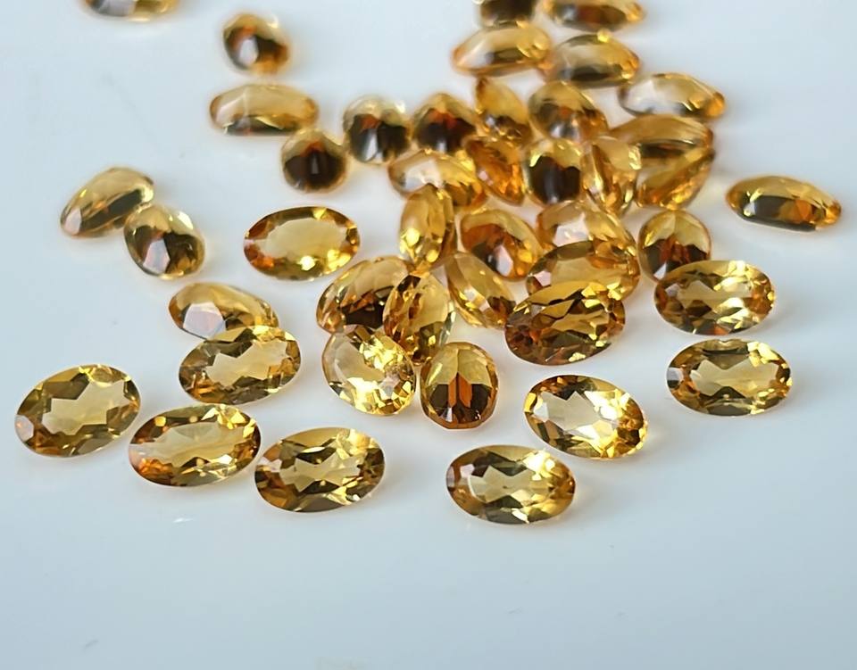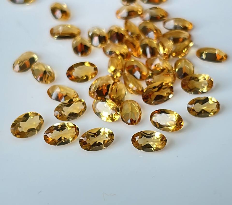 พลอยซิทรีนธรรมชาติทรงวงรีทรงตัดขนาด6x8มม. ทรงวงรีสีเหลืองมะนาวหลวม