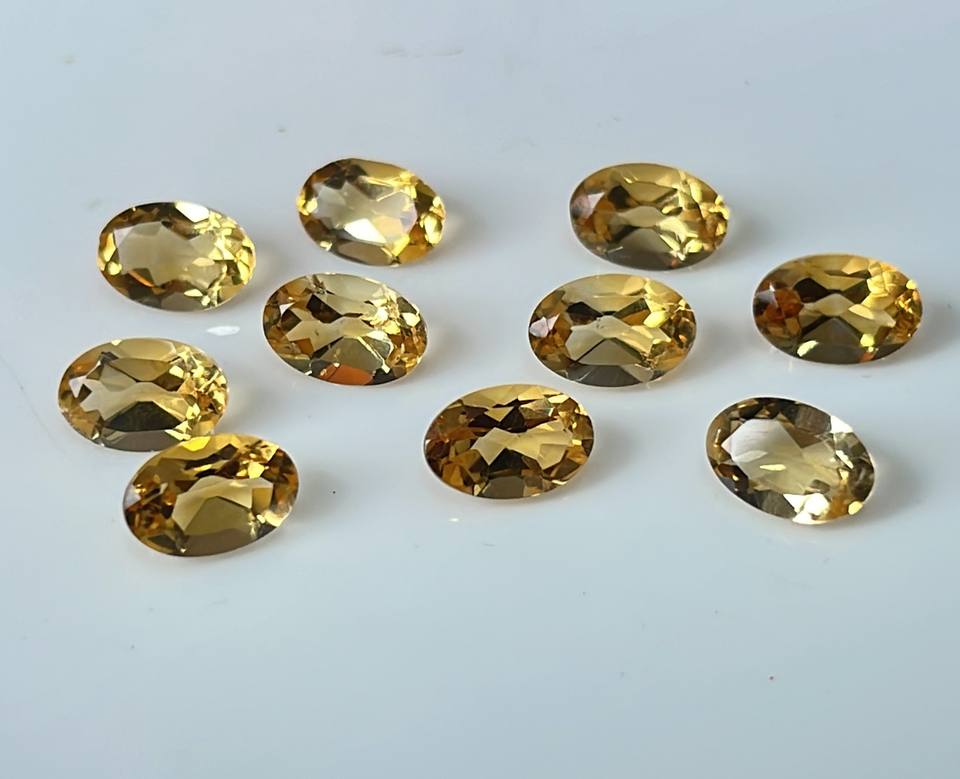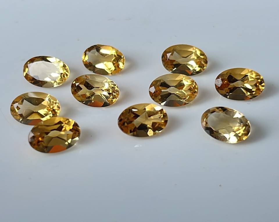 พลอยซิทรีนธรรมชาติทรงวงรีทรงตัดขนาด7x9มม. ทรงวงรีสีเหลืองมะนาวหลวมคุณภาพสูง