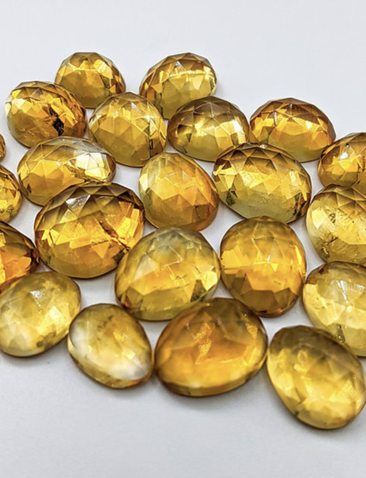 หินซิทรีนธรรมชาติทรงรีสีกุหลาบแฟนซีตัดเหลี่ยมเพชรพลอยสีเหลืองอัญมณีหลวม jaipur ผู้ผลิตเครื่องประดับควอตซ์ November birth sunela