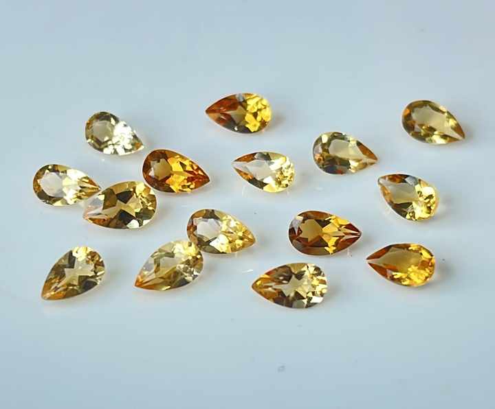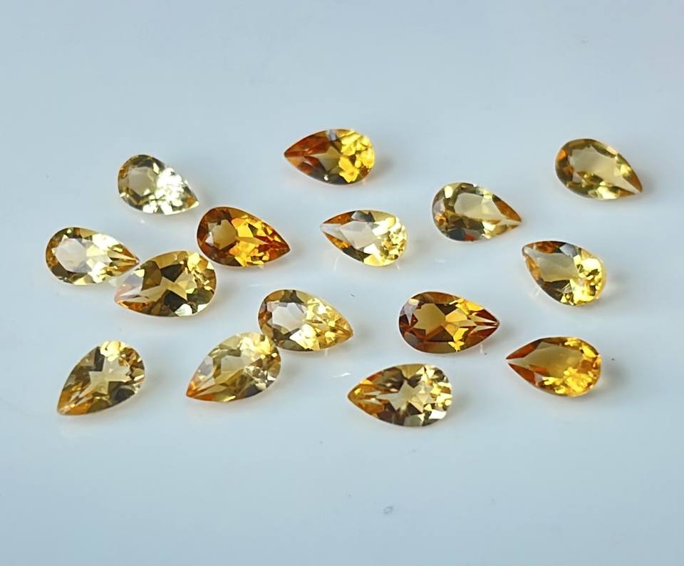 ลูกแพร์สีเหลืองมะนาวธรรมชาติตัดขนาด3X5มม. ลูกแพร์สีเหลืองมะนาวเหลี่ยมเพชรพลอย