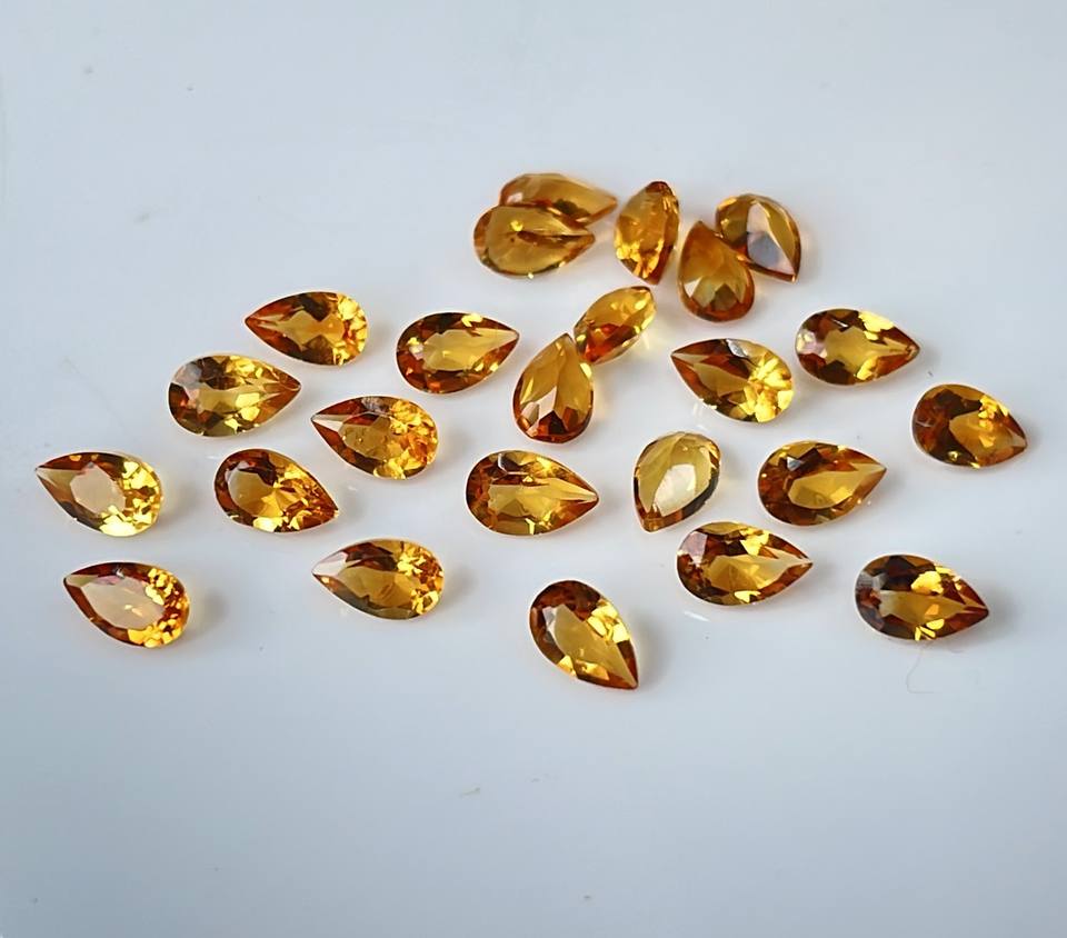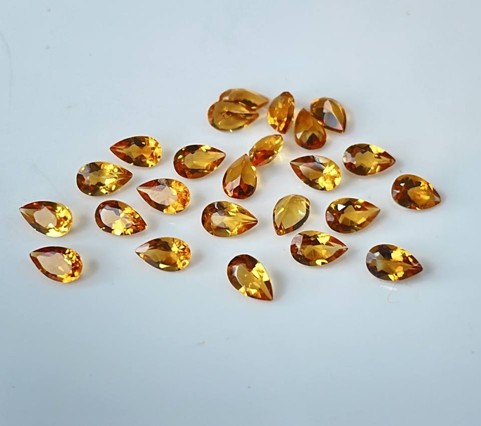 ลูกแพร์ซิทรีนธรรมชาติ5x7มม. ลูกแพร์สีเหลืองมะนาวเจียระไนเหลี่ยมเพชรพลอยคุณภาพสูง