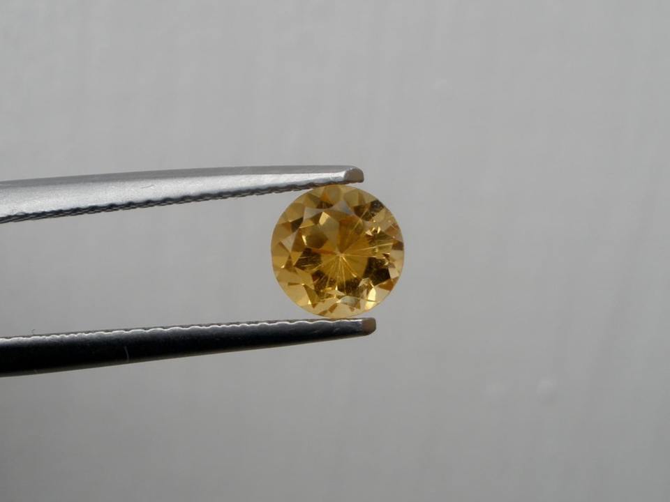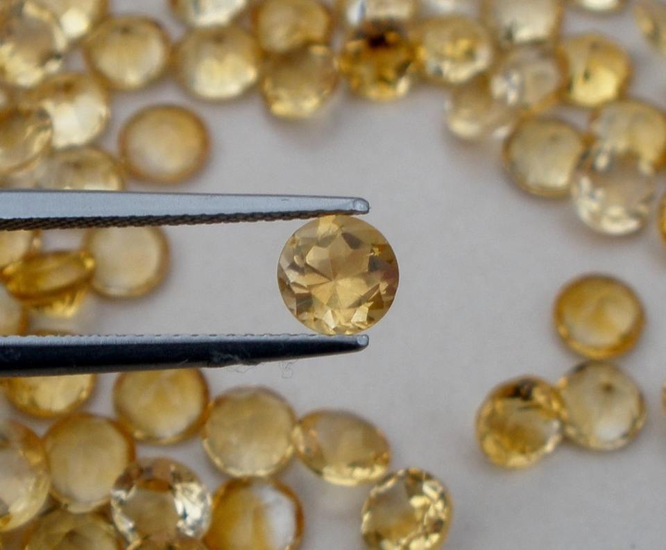 พลอยซิทรินธรรมชาติทรงกลมขนาด 7 มม. ได้รับการรับรองจากผู้ตรวจสอบอิสระ สำหรับทำเครื่องประดับ พร้อมเอฟเฟกต์แสงดาว