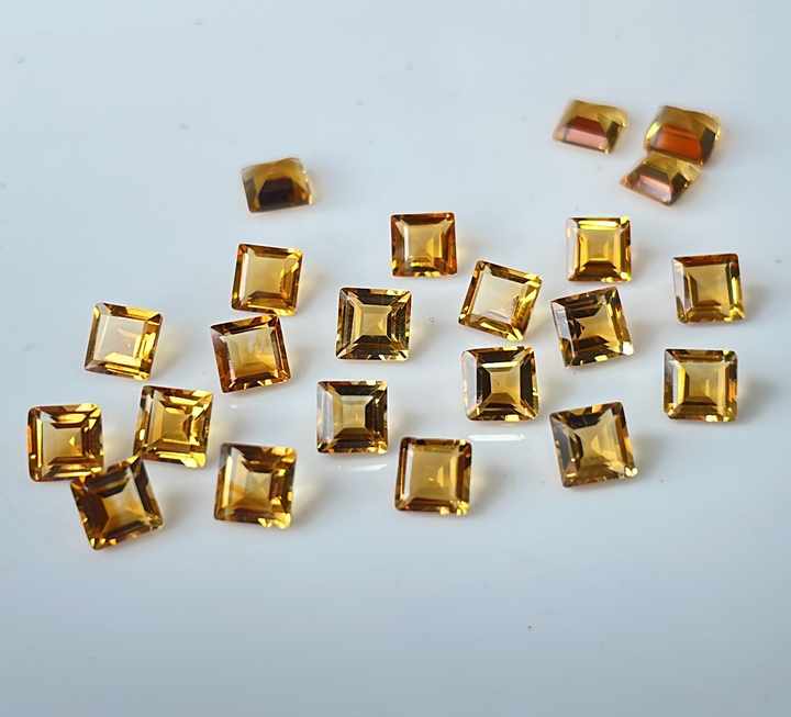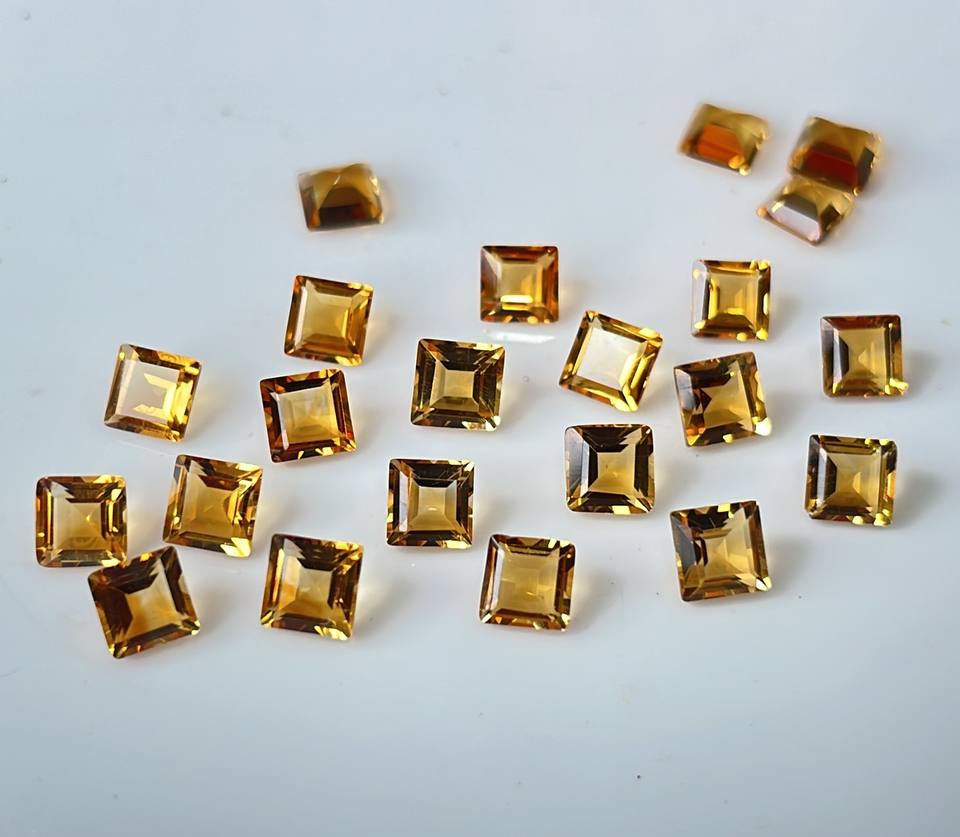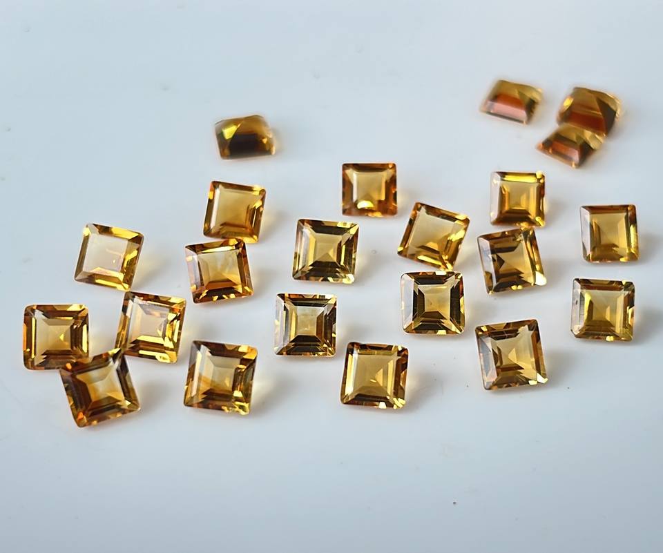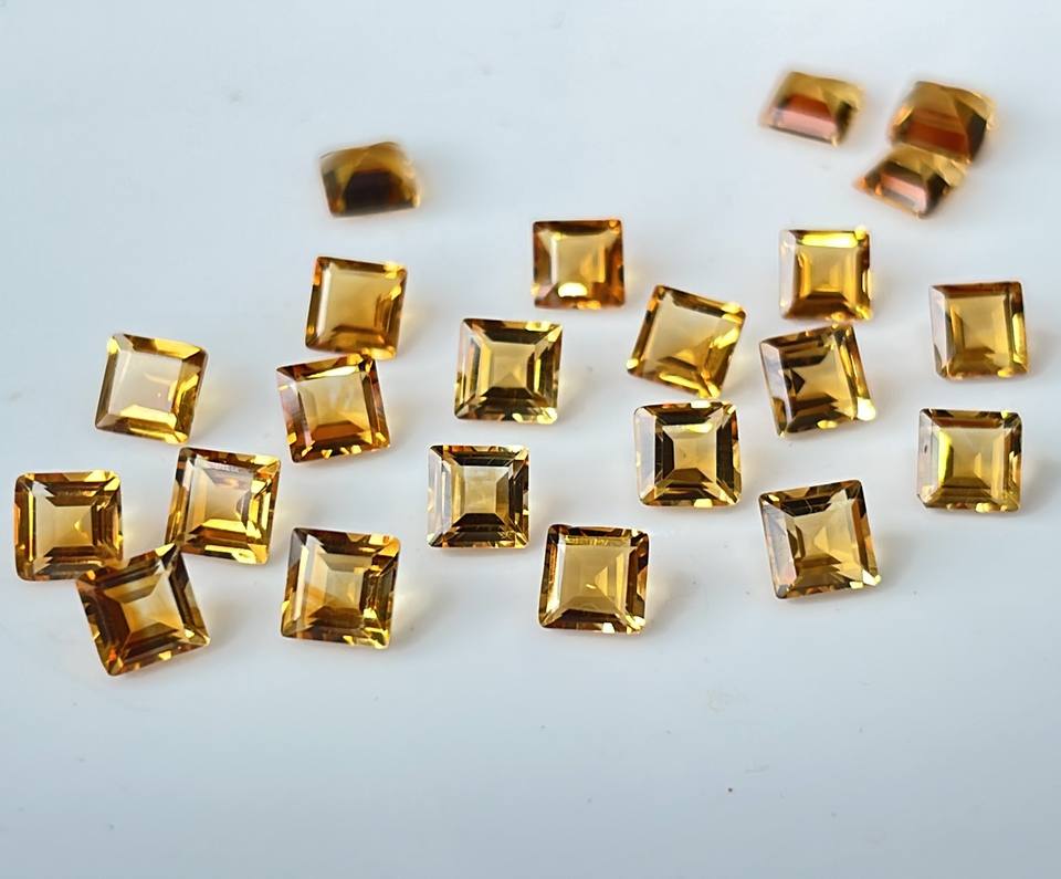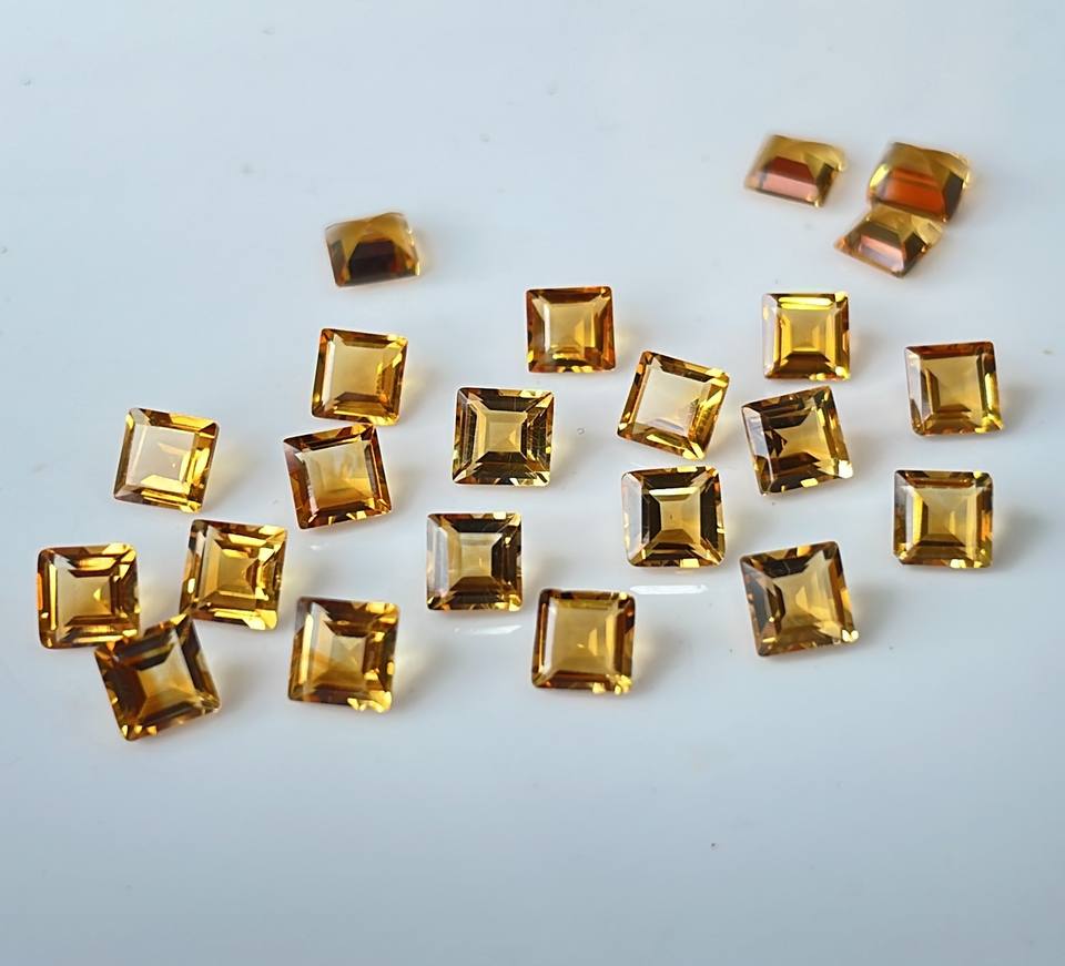 พลอยซิทรีนเจียระไนเหลี่ยมเพชรพลอยสีเหลืองมะนาวธรรมชาติขนาด8มม.