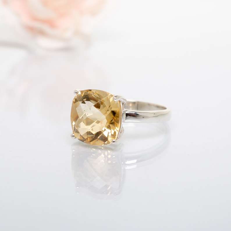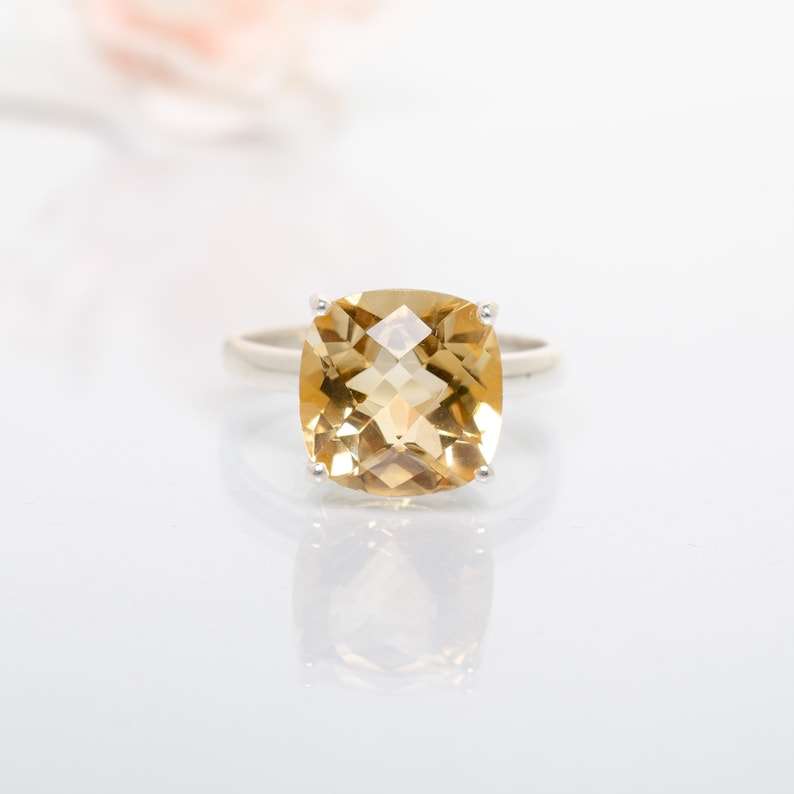 แหวนเงินแท้ 925 ประดับพลอยซิทรินทรงเหลี่ยมแบบคาโบชอง แหวนทำมือจากพลอยธรรมชาติ เครื่องประดับแฟชั่นสำหรับผู้หญิง